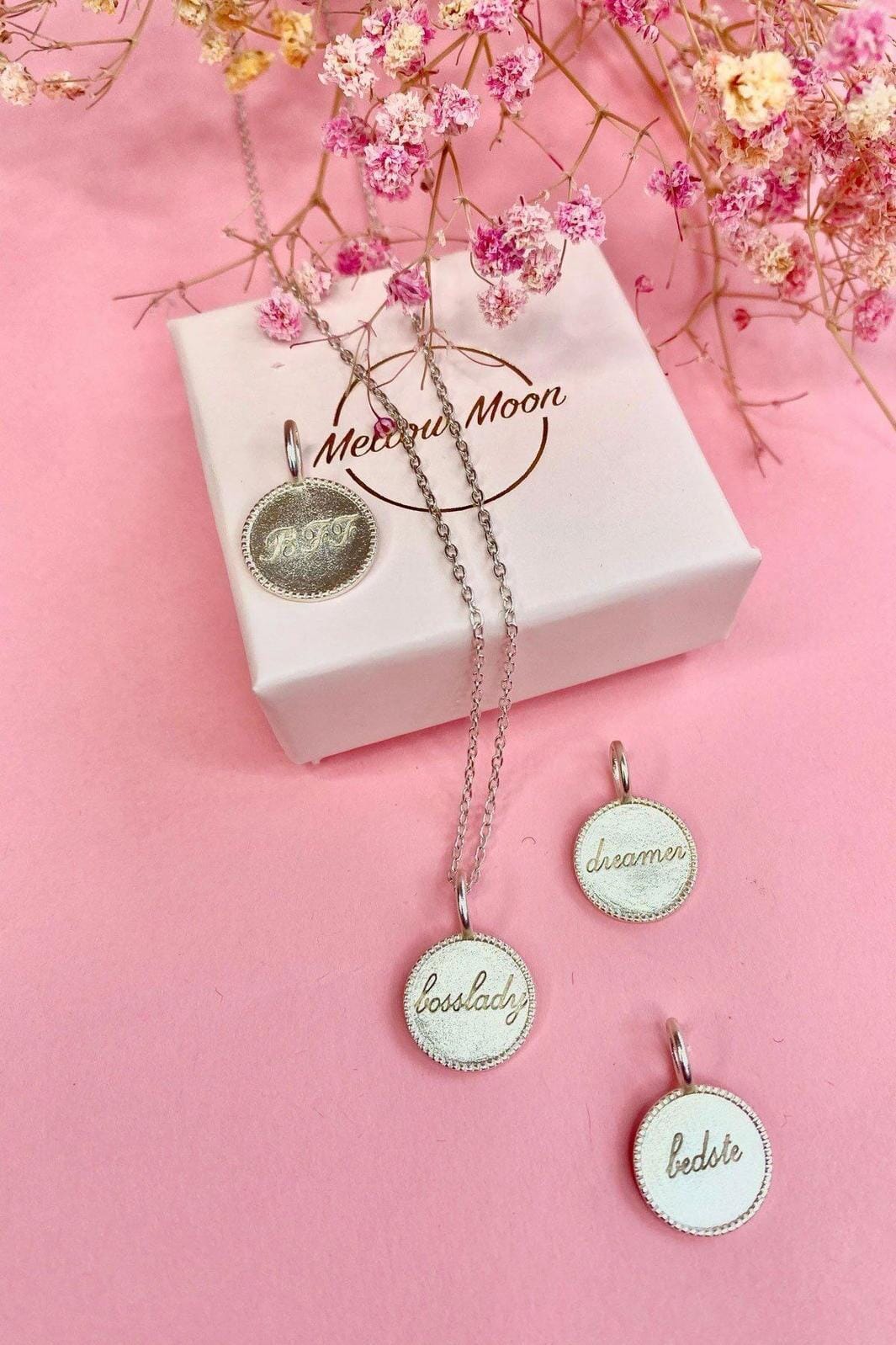 Velkommen til vores eget brand her hos MollyogMy.dk med en masse fine mor & barn smykker.Smuk, elegant og samtidig enkelt vedhæng i forsølvt messing fra Mellow Moon.
