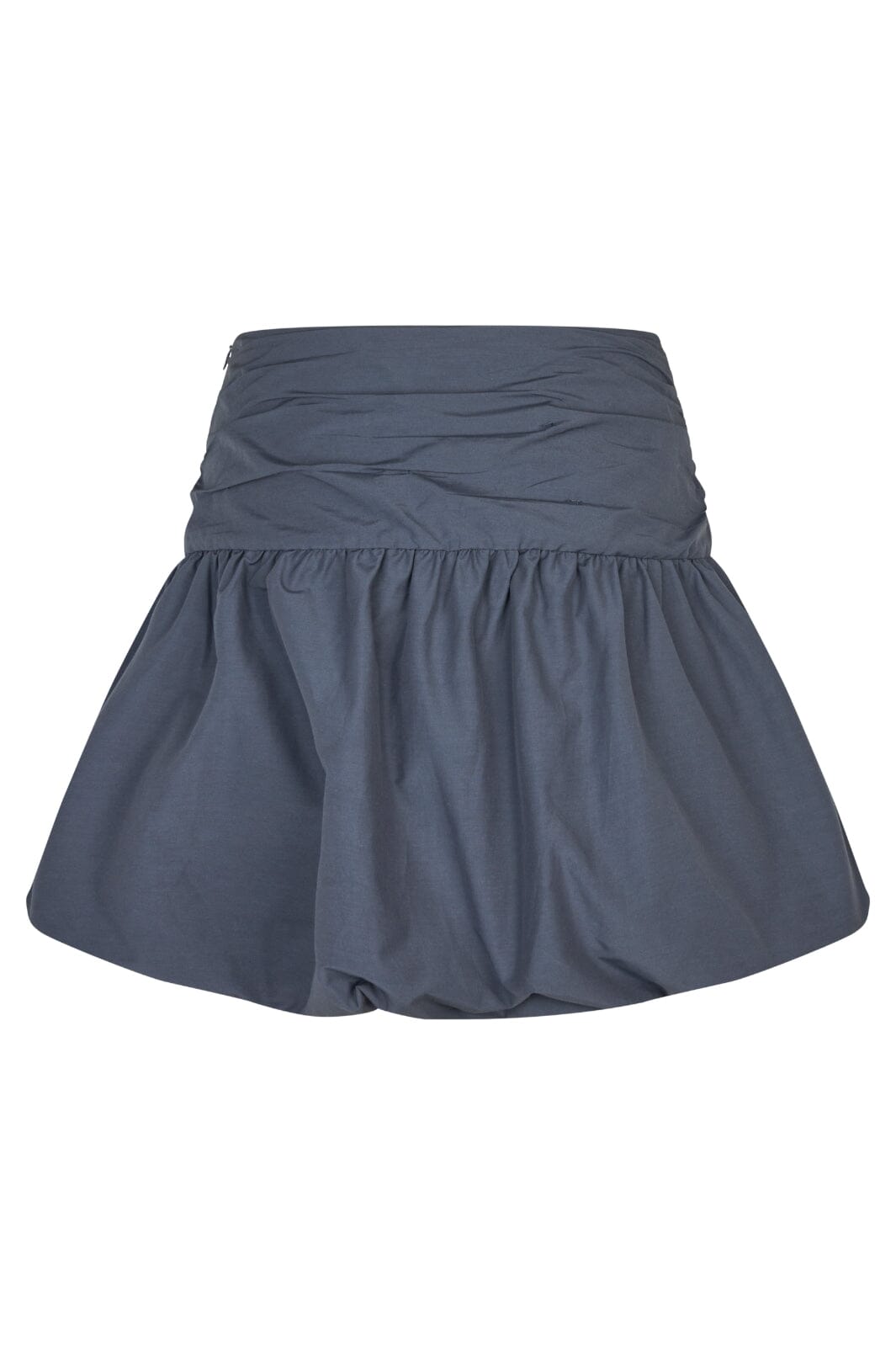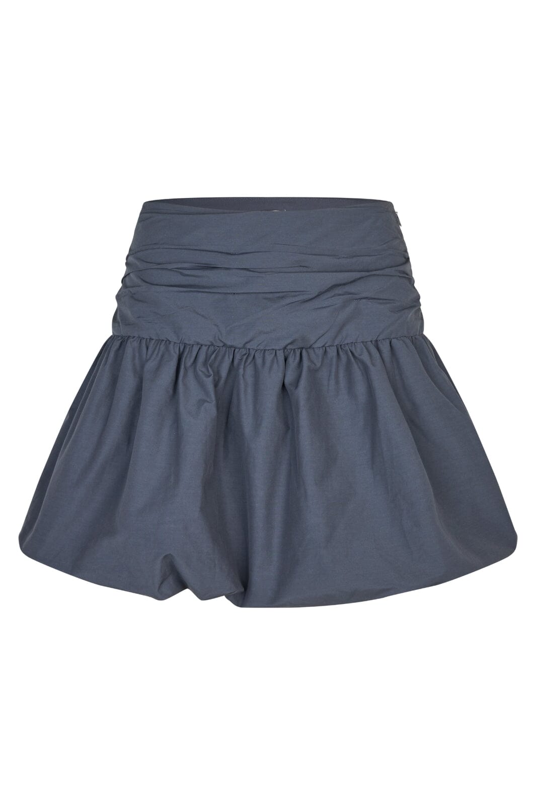 Poplin rok van Modström in een donkerblauwe ombre-kleur. De rok heeft een rimpel-effect bij de taille en een losse pasvorm met ruches die zorgen voor een zachte val.