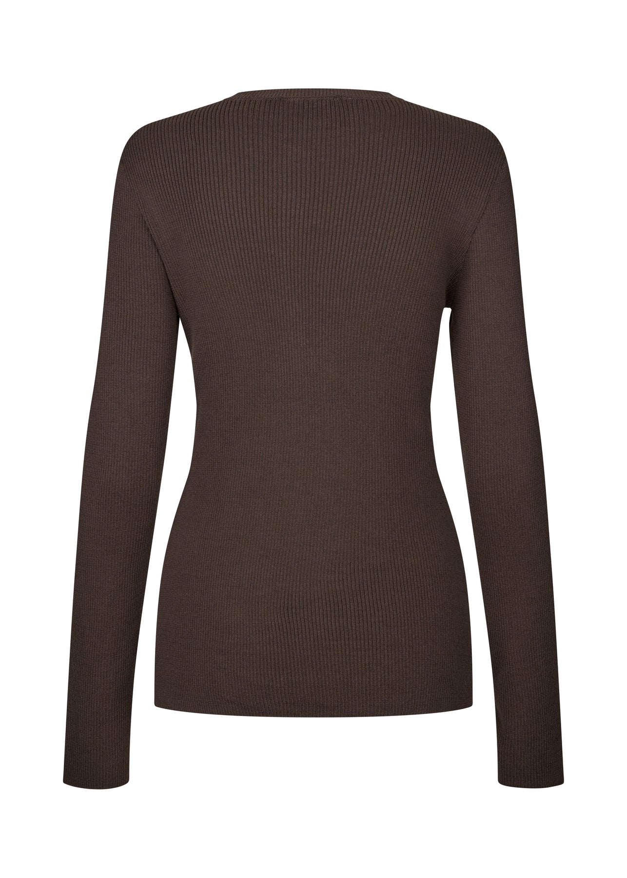 Bruin vest van Modström met een geribde structuur en een aangesloten pasvorm. Het vest heeft lange mouwen en een knoopsluiting aan de voorkant.