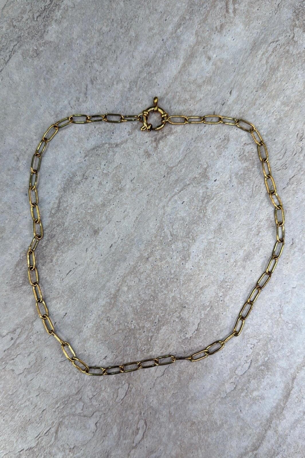 Ketting van Molly&My Jewellery, gemaakt van roestvrij staal met een goudkleurige afwerking. De ketting heeft langwerpige schakels en een ronde sluiting.