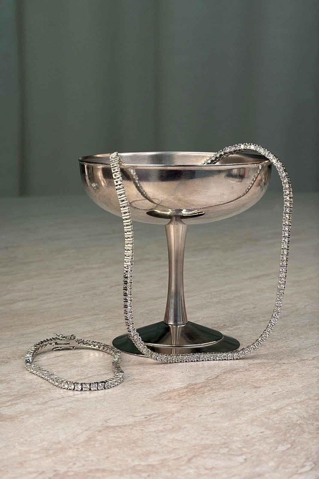 Sieradenset van Molly&My Jewellery met een verzilverde afwerking. De set bestaat uit een ketting en een armband met kleine steentjes.
