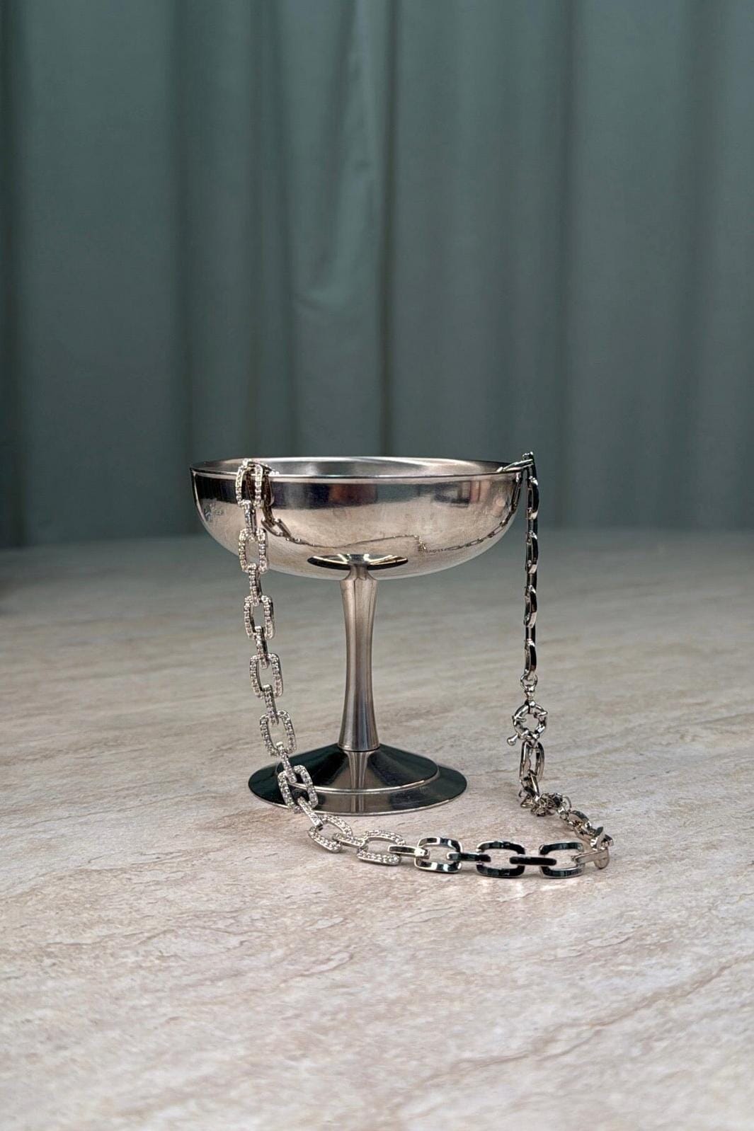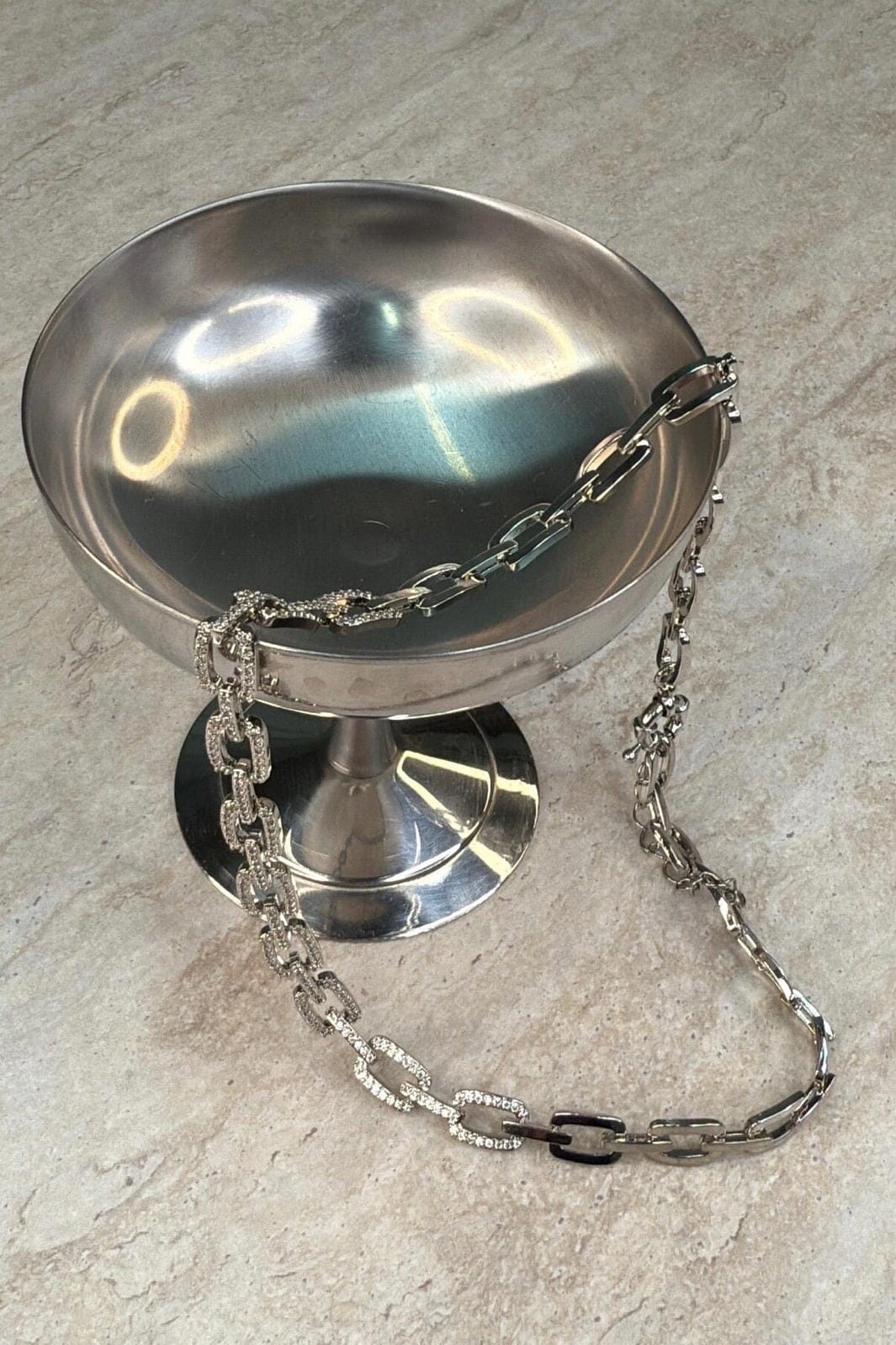Verzilverde ketting van Molly&My Jewellery met grote, rechthoekige schakels. Sommige schakels zijn glad, terwijl andere zijn versierd met kleine steentjes.