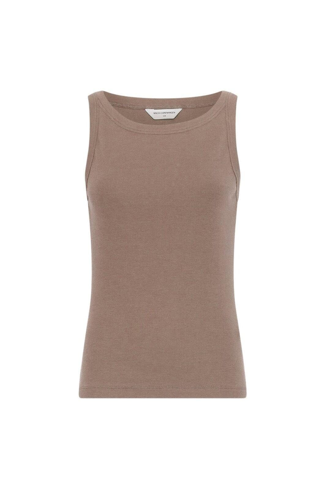 Mouwloze top van MSCH Copenhagen in een neutrale bruine tint. De top is gemaakt van biologisch katoen en heeft een slim fit met een ronde halslijn.