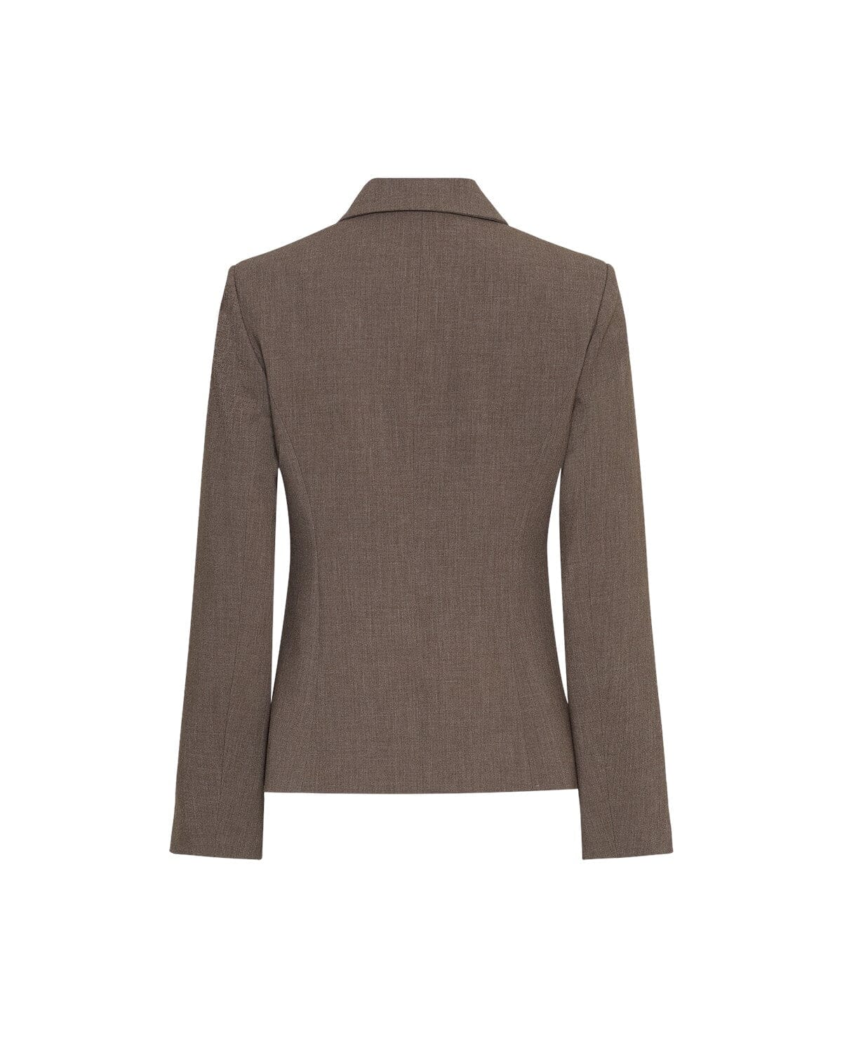 Blazer van Moss Copenhagen in een donkergrijs gemêleerde tint. De blazer heeft een klassieke kraag, lange mouwen en voorzakken met klep.