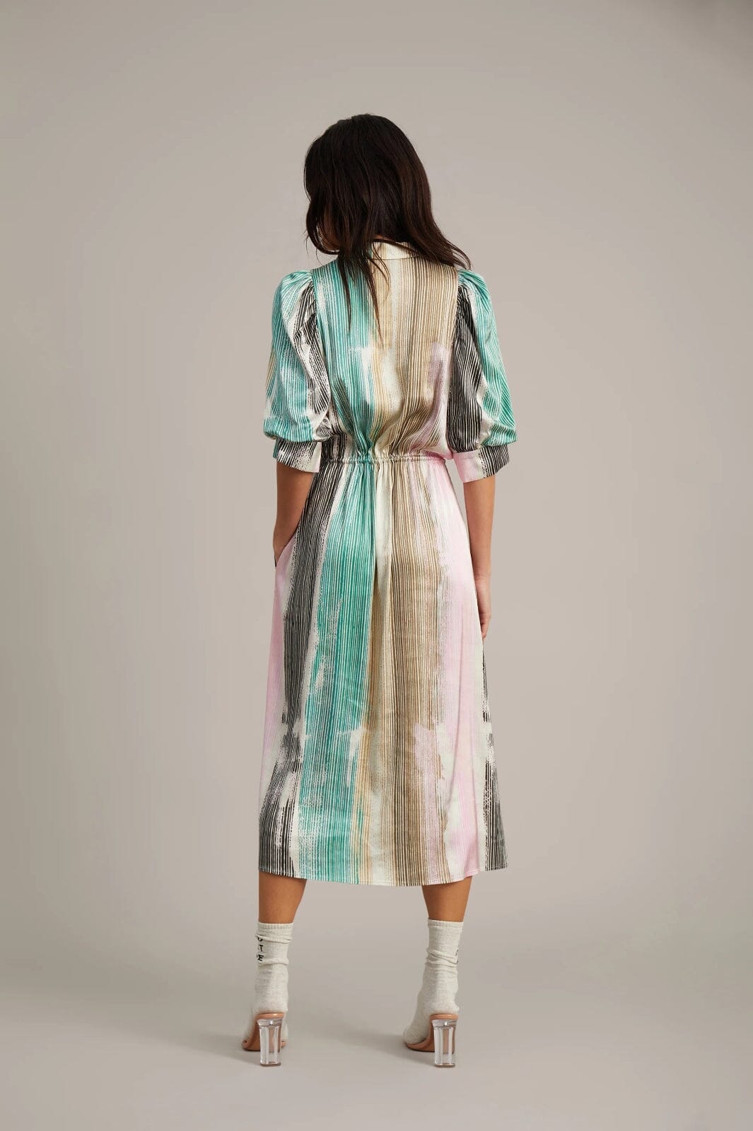 En smukt siddende og midi-lang, printet kjole i en lækker silke og Ecovero viskoseblanding - med normal pasform, lille krave, store pufærmer og bindebånd i taljen.