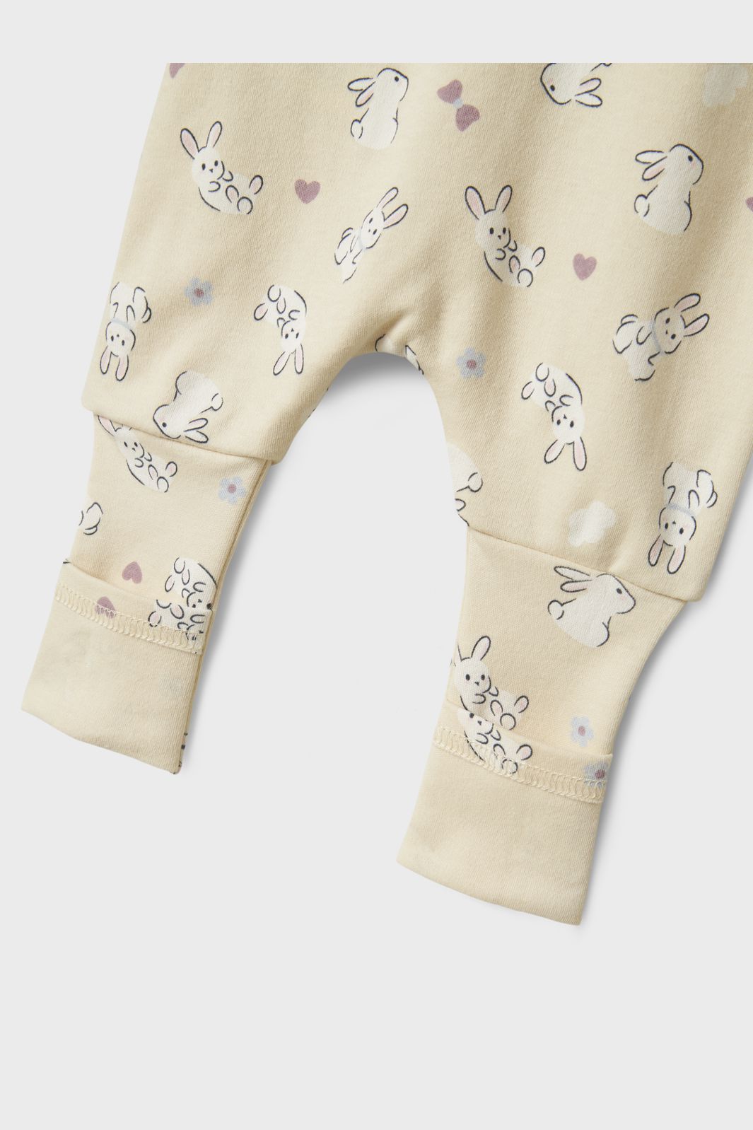Pyjama van Name It in zandkleurig katoen met een all-over print van konijnen en hartjes. De pyjama heeft een ritssluiting, lange mouwen en enkellengte.