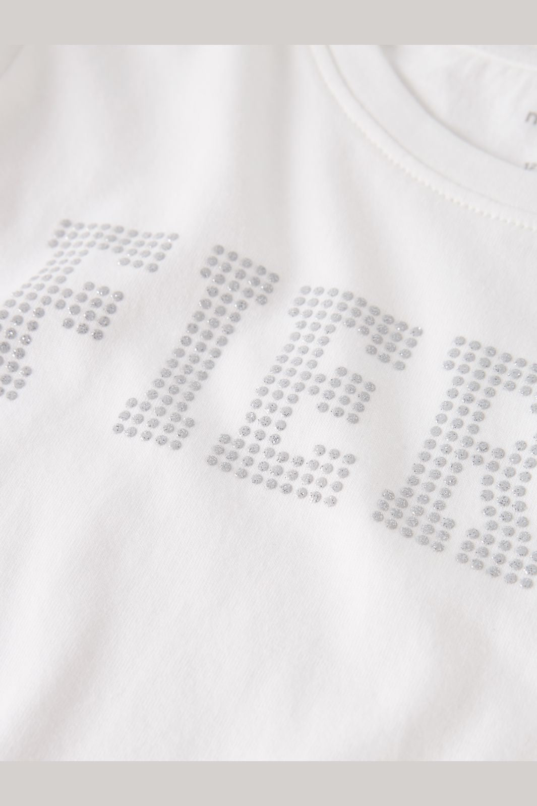 Langermige top van Name It in een witte tint. De top is gemaakt van 100% biologisch katoen en heeft een glitterprint aan de voorkant.