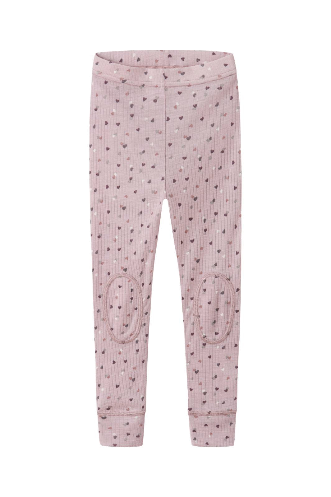 Grijze leggings van Name It met een hartvormige print. Gemaakt van een mix van merinowol en modal, wat zorgt voor een zachte en warme sensatie op de huid.