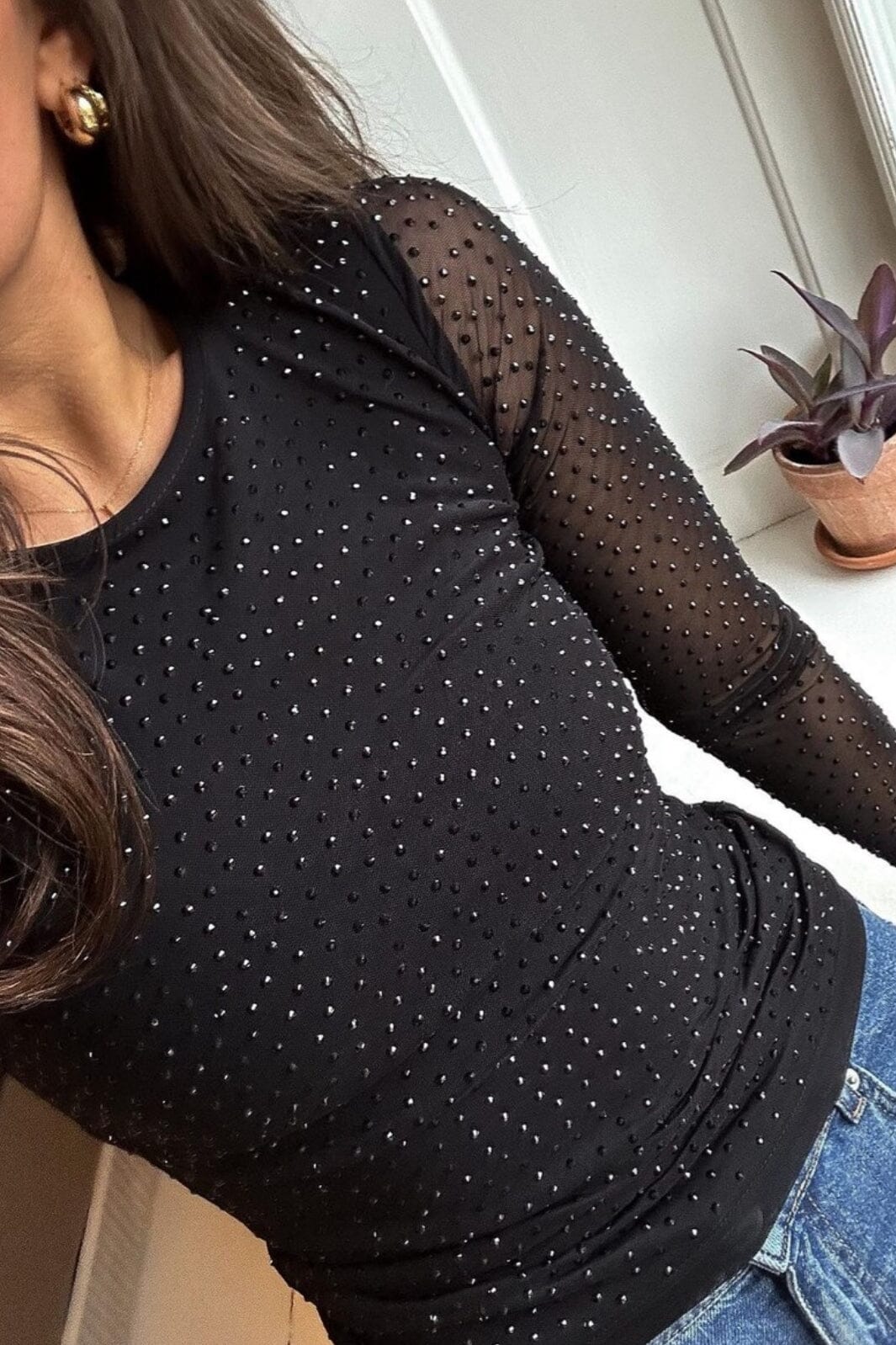 Neo Noir Basira Stone Mesh Blouse Kleur: Black