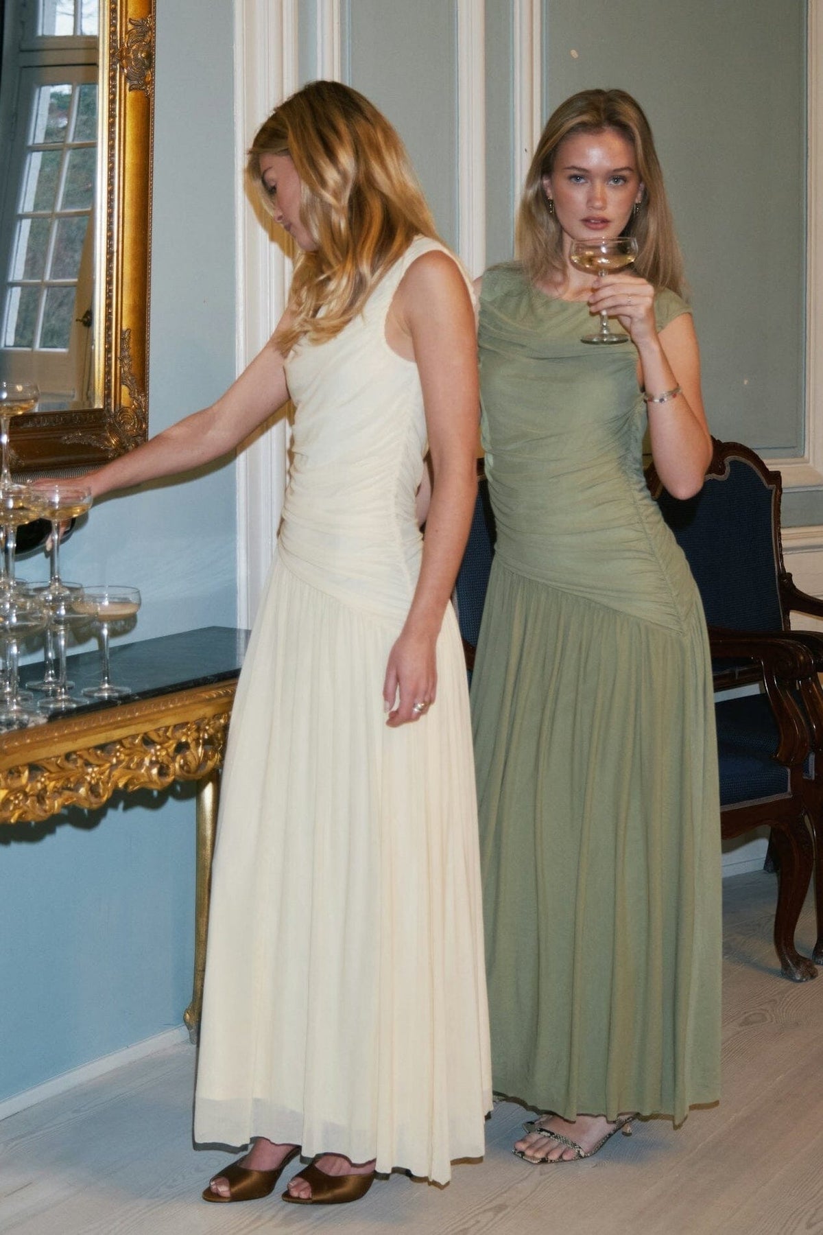 - Het model is 176 cm lang en draagt maat 36
