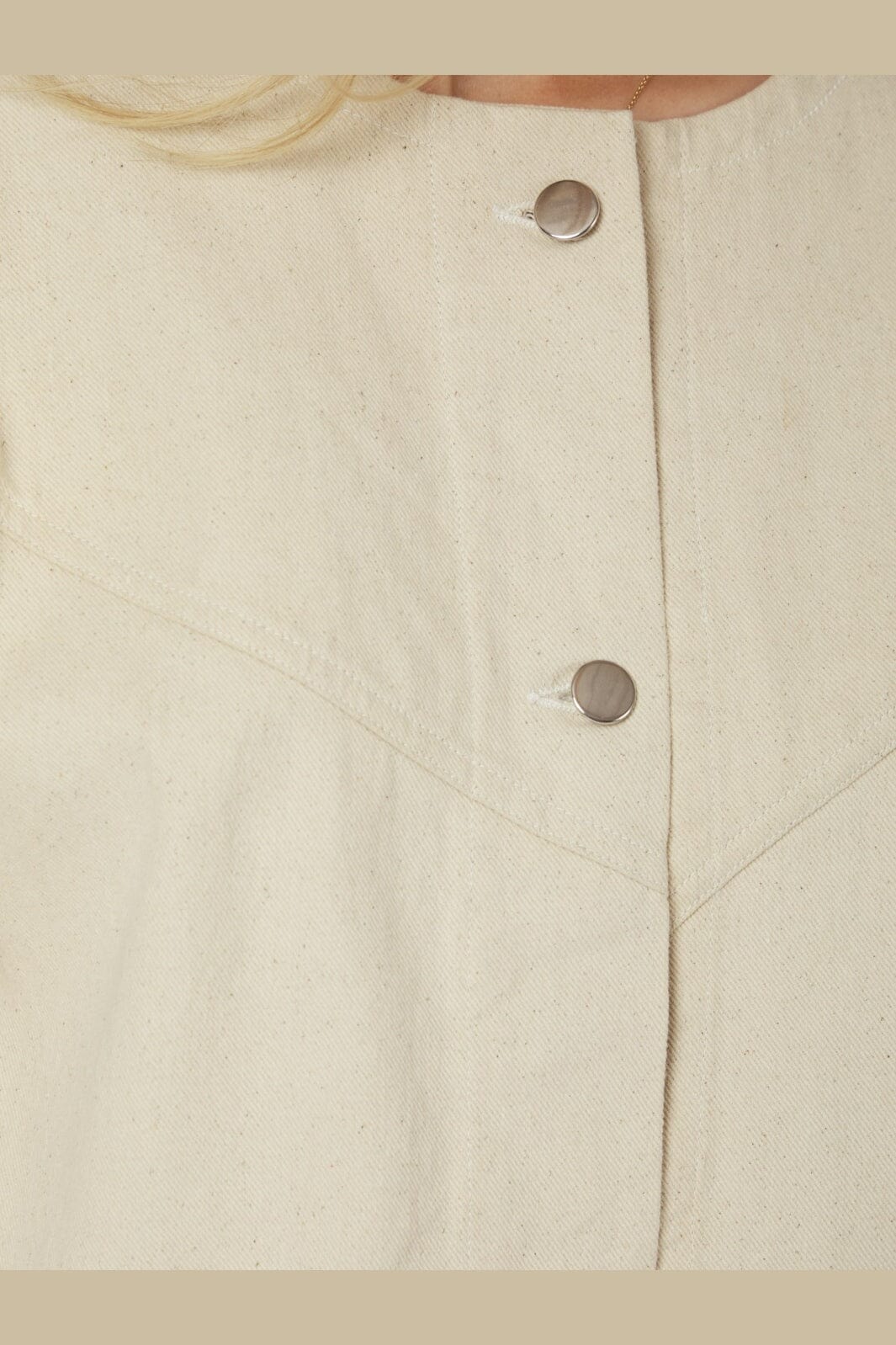 Denimjack van Neo Noir in een natuurlijke kleur. Het jack is gemaakt van 100% katoen en heeft lange mouwen met puff en decoratieve stiksels.