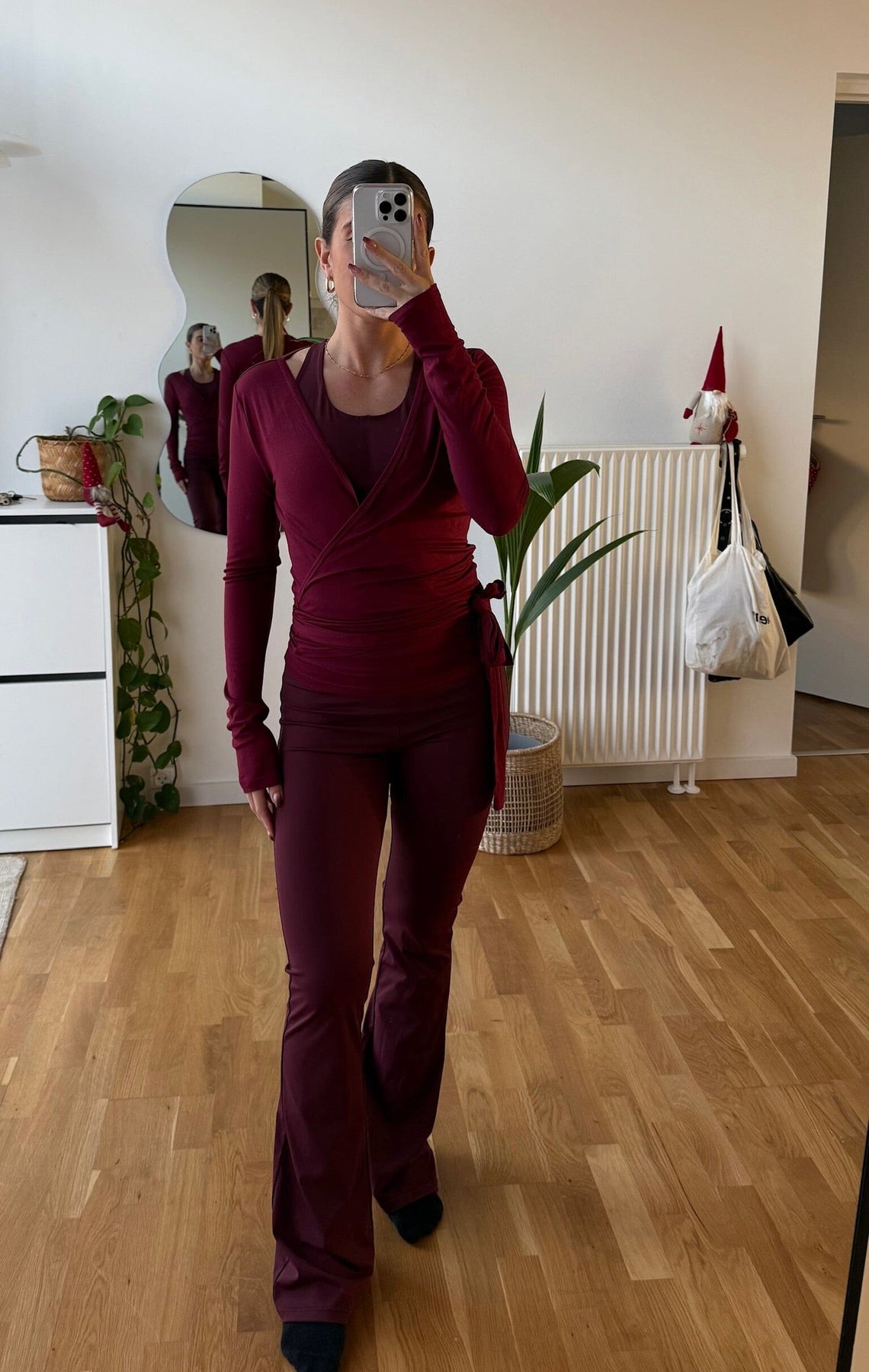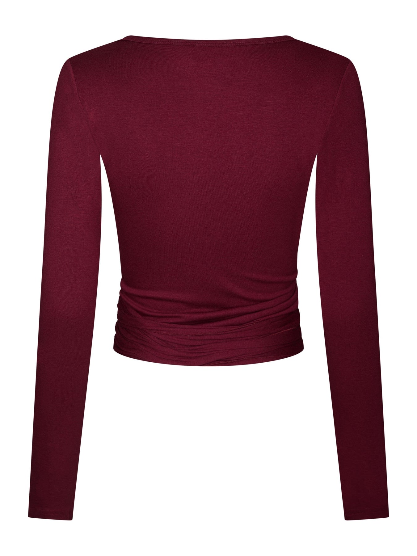 Wikkelblouse van Neo Noir in een diep rode kleur. De blouse is gemaakt van zachte jersey met 91% viscose en 9% elastaan.