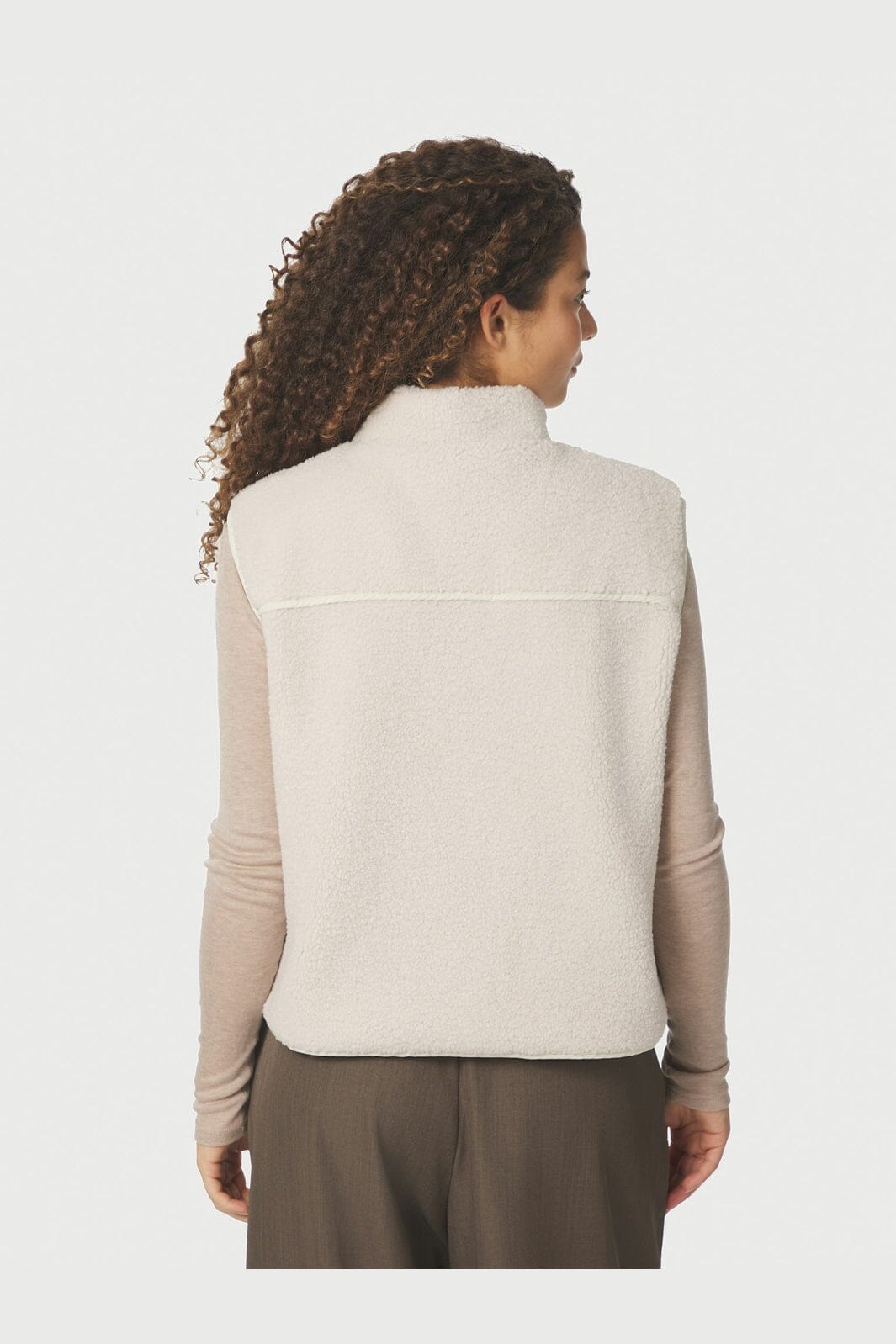 Mouwloos vest van Neo Noir in een zachte teddykwaliteit en lichte ivoorkleur. Het vest is geschikt voor ontspannen en huiselijke omgevingen en heeft twee grote voorzakken.
