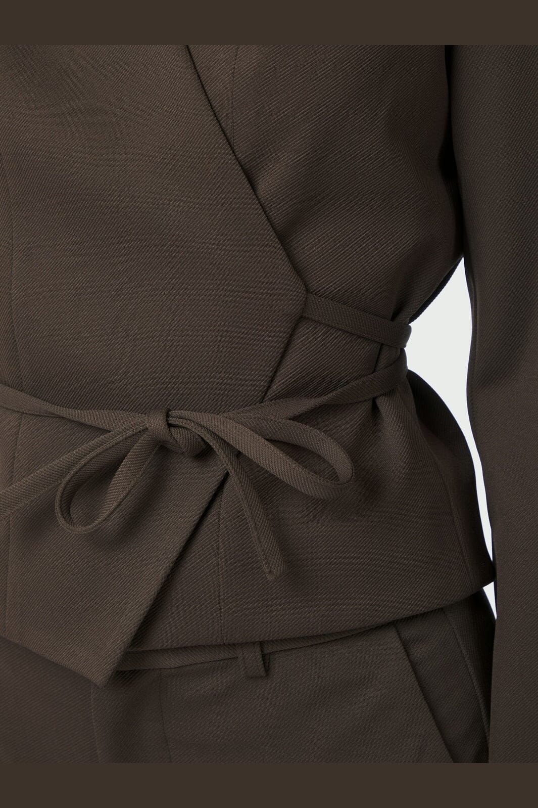 Donkerbruine blouse van Neo Noir met een overslagdesign. De blouse heeft een V-hals en lange mouwen. Het striklint in de taille geeft je de mogelijkheid om de pasvorm aan te passen.