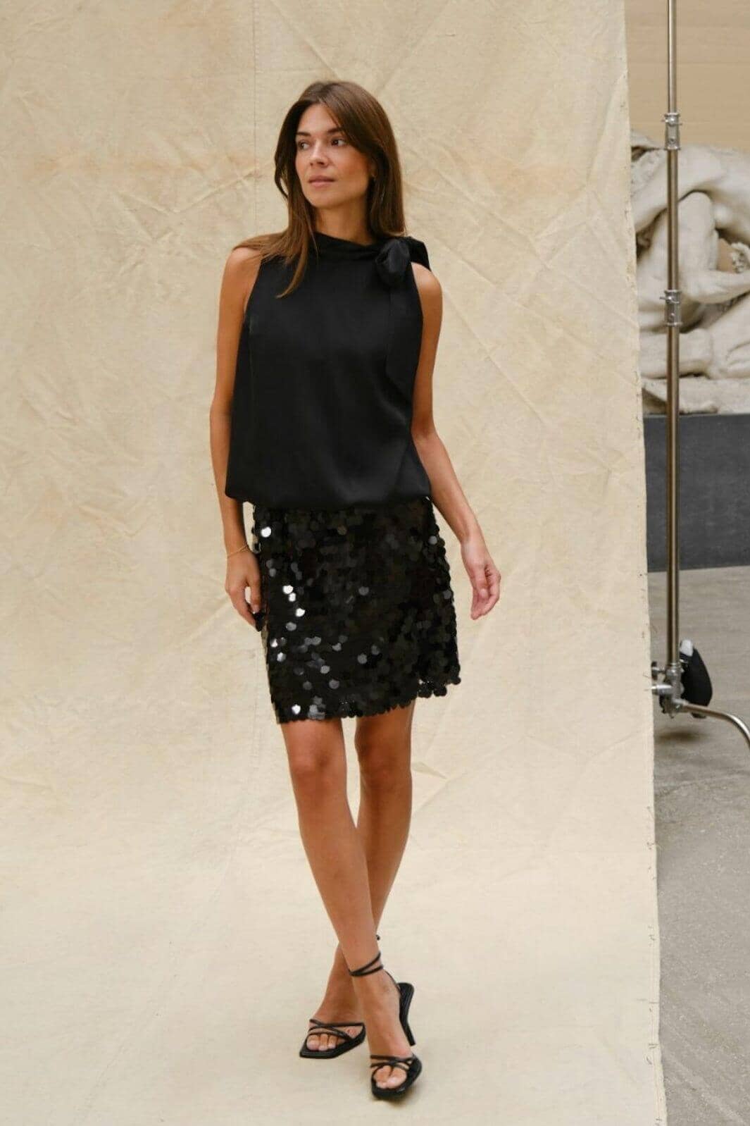 Zwarte satinentop van Neo Noir, geschikt voor formele en feestelijke gelegenheden. De top is gemaakt van satinkwaliteit.