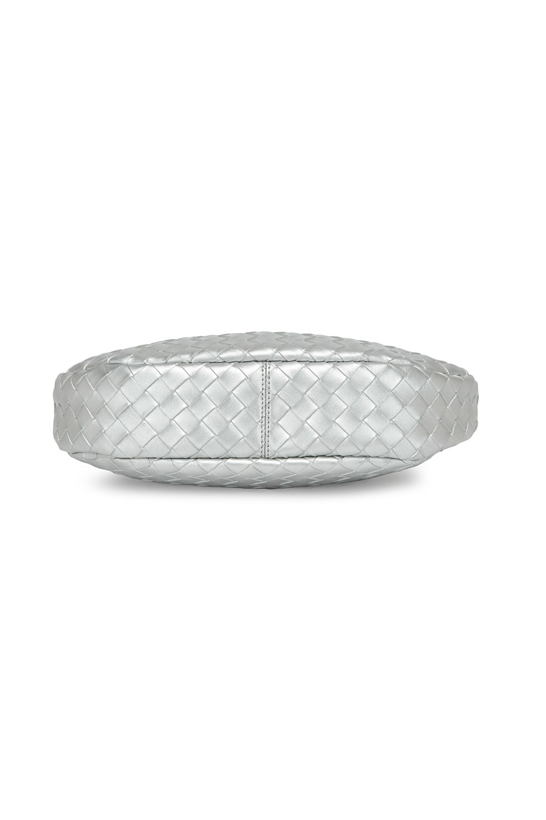 Zilverkleurige schoudertas van Noella met geweven textuur en een platte halvemaanvorm. De tas is gemaakt van polyurethaan en heeft details in geborsteld zilver.