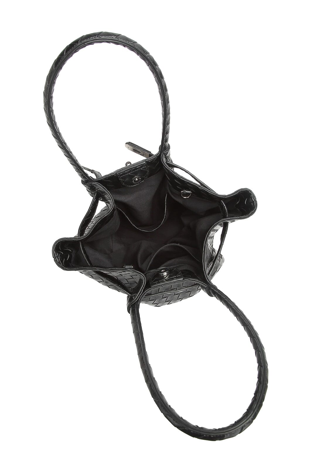 Zwarte tas van Noella, gemaakt van 100% polyurethaan met een gevlochten design over het hele oppervlak. De tas heeft twee lange hengsels en details in geborsteld zilver.