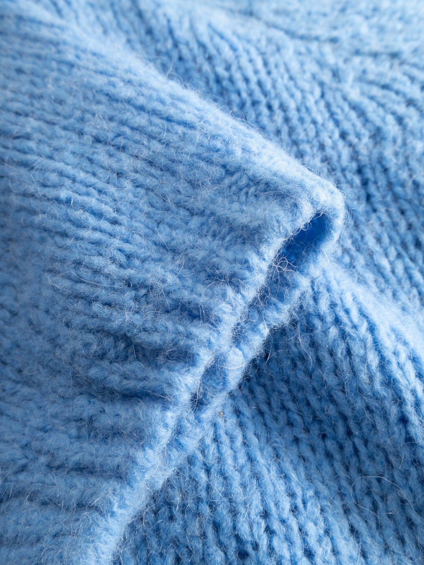 Blauwe gebreide cardigan van Noella met een losse pasvorm en brede mouwen. Het heeft een eenvoudig ontwerp met ribbelranden en lange mouwen.