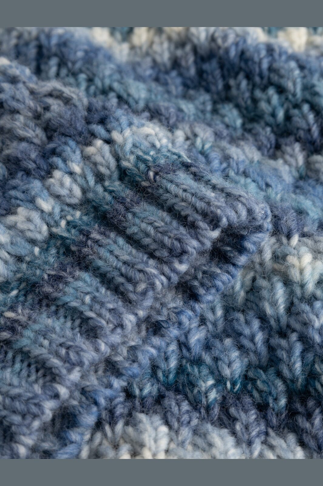 Gebreide bodywarmer van Noella, gemaakt van 53% wol en 47% polyester. De bodywarmer heeft een gebreid patroon in blauwe en witte tinten.