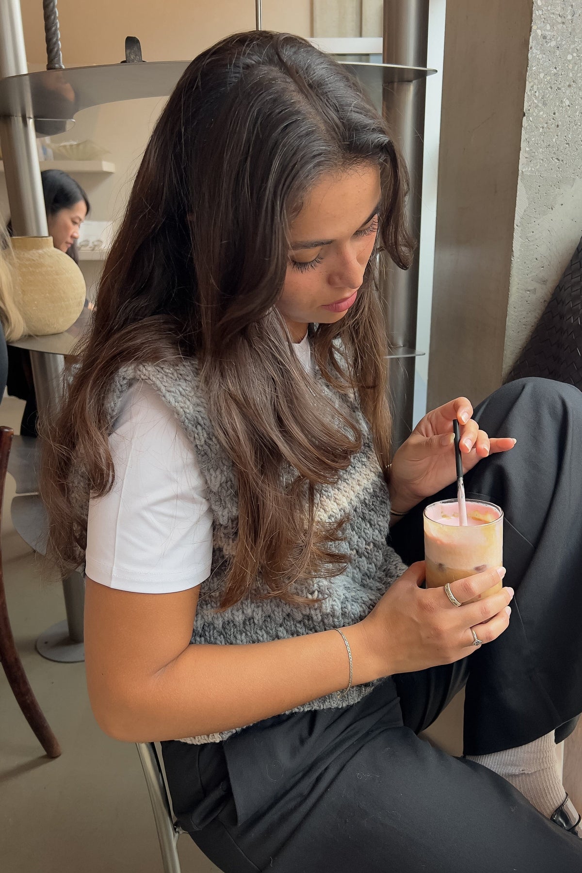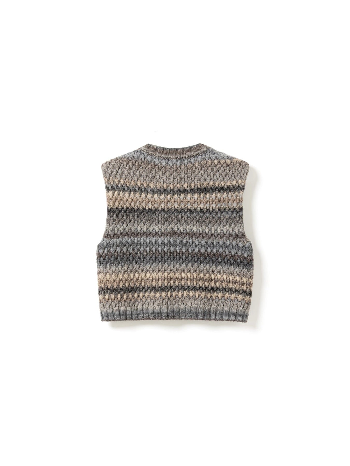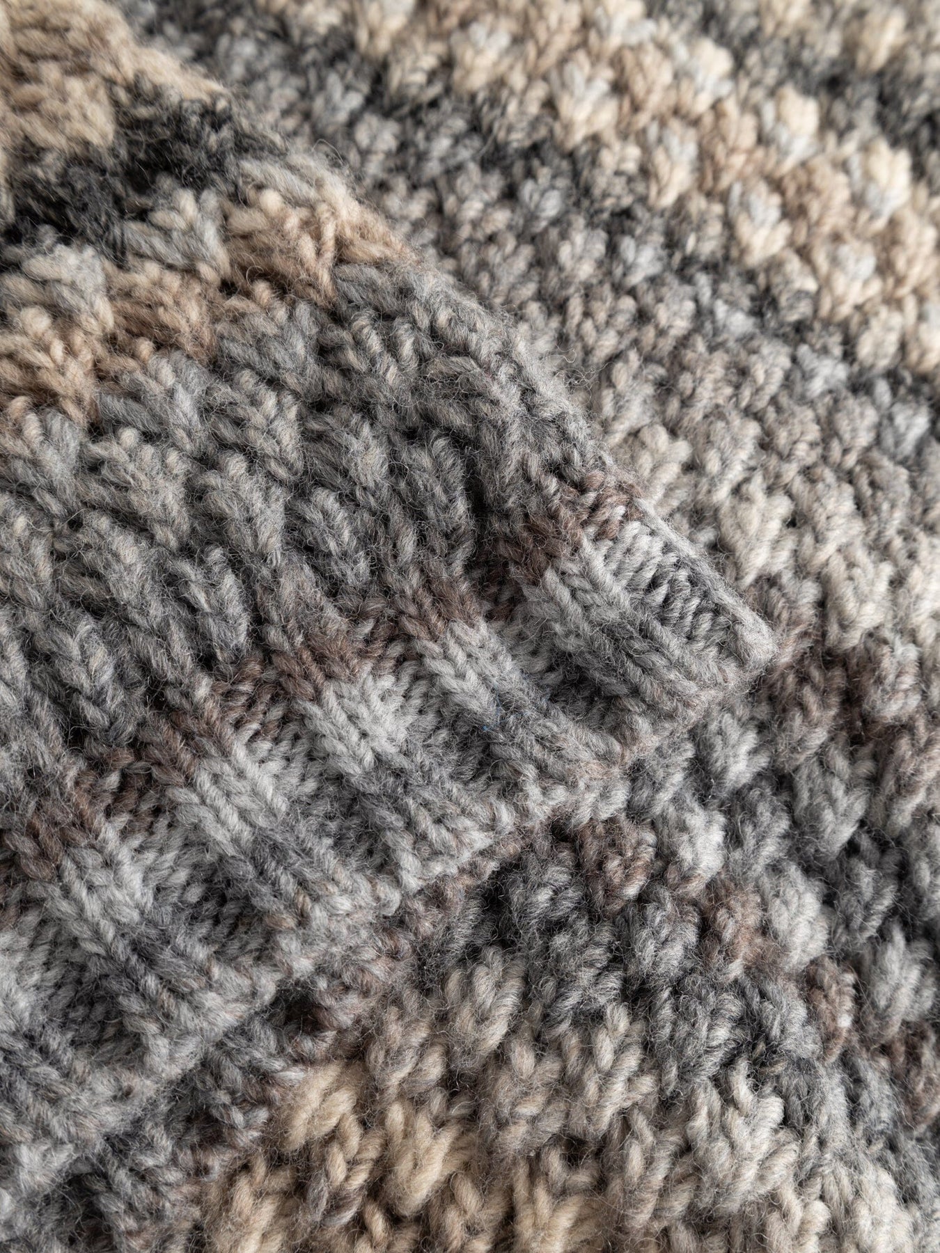 Gebreide vest van Noella in lichtgrijze en beige tinten. De vest heeft een chunky breistijl met een gemêleerd streep patroon.