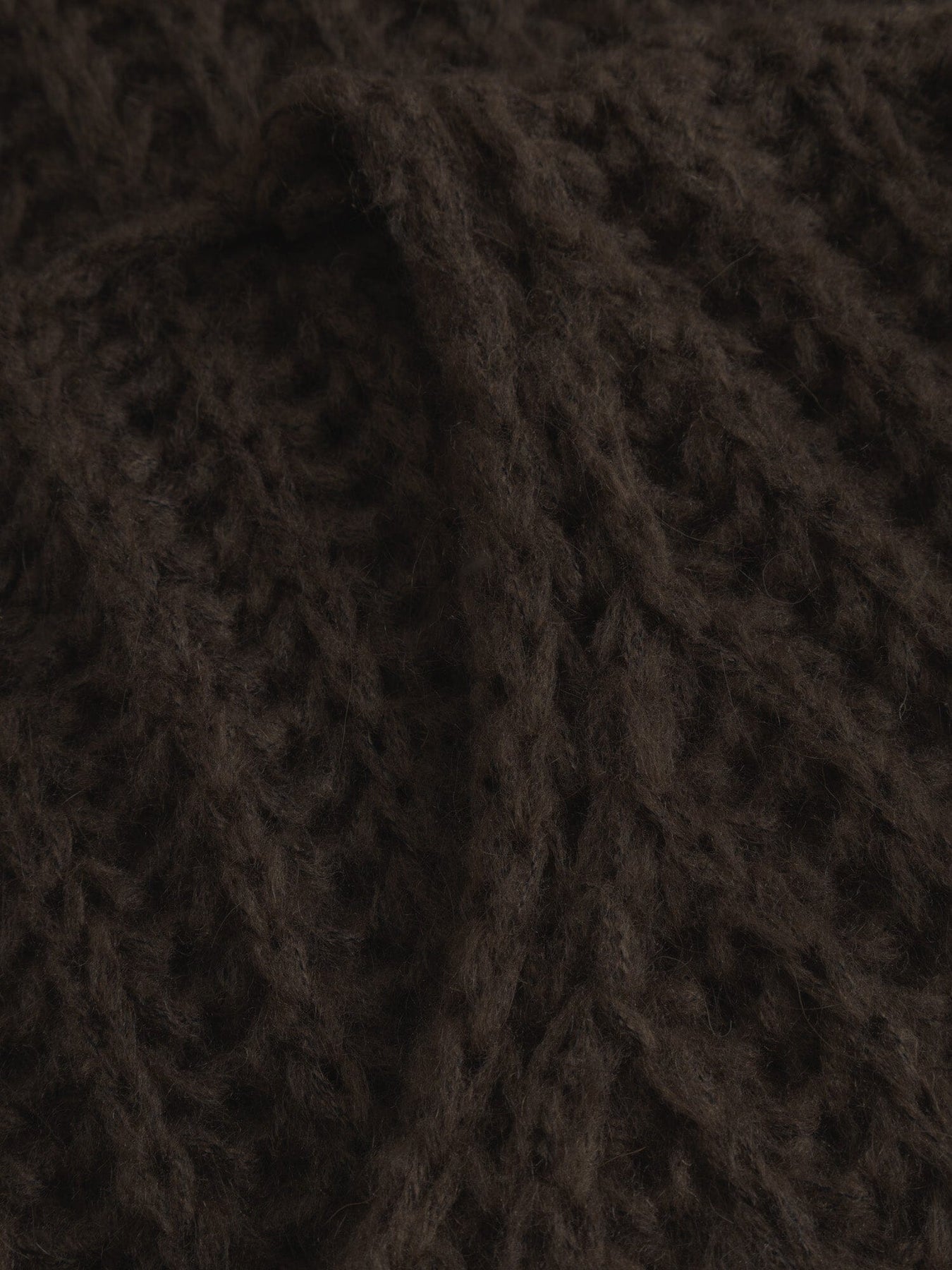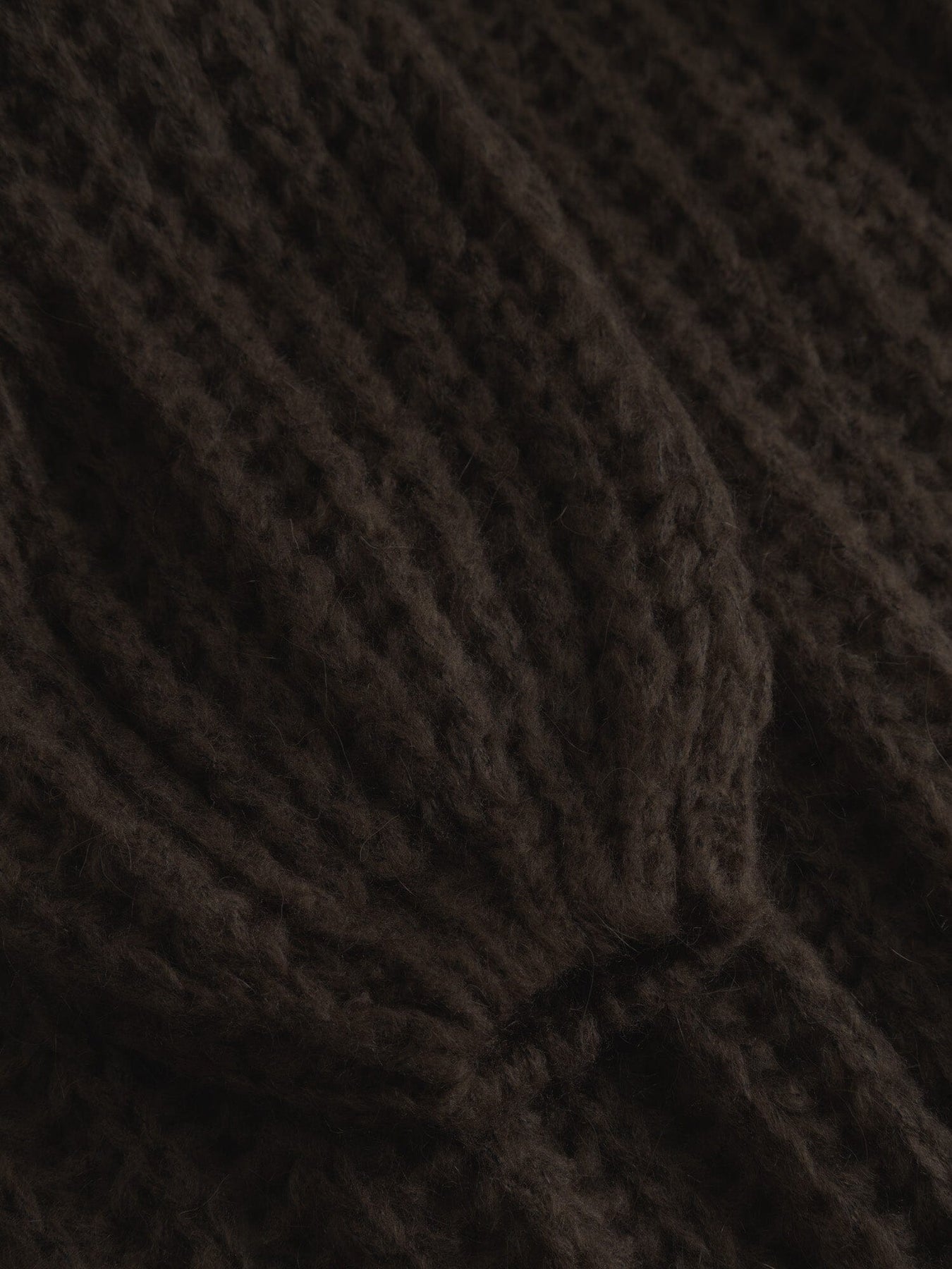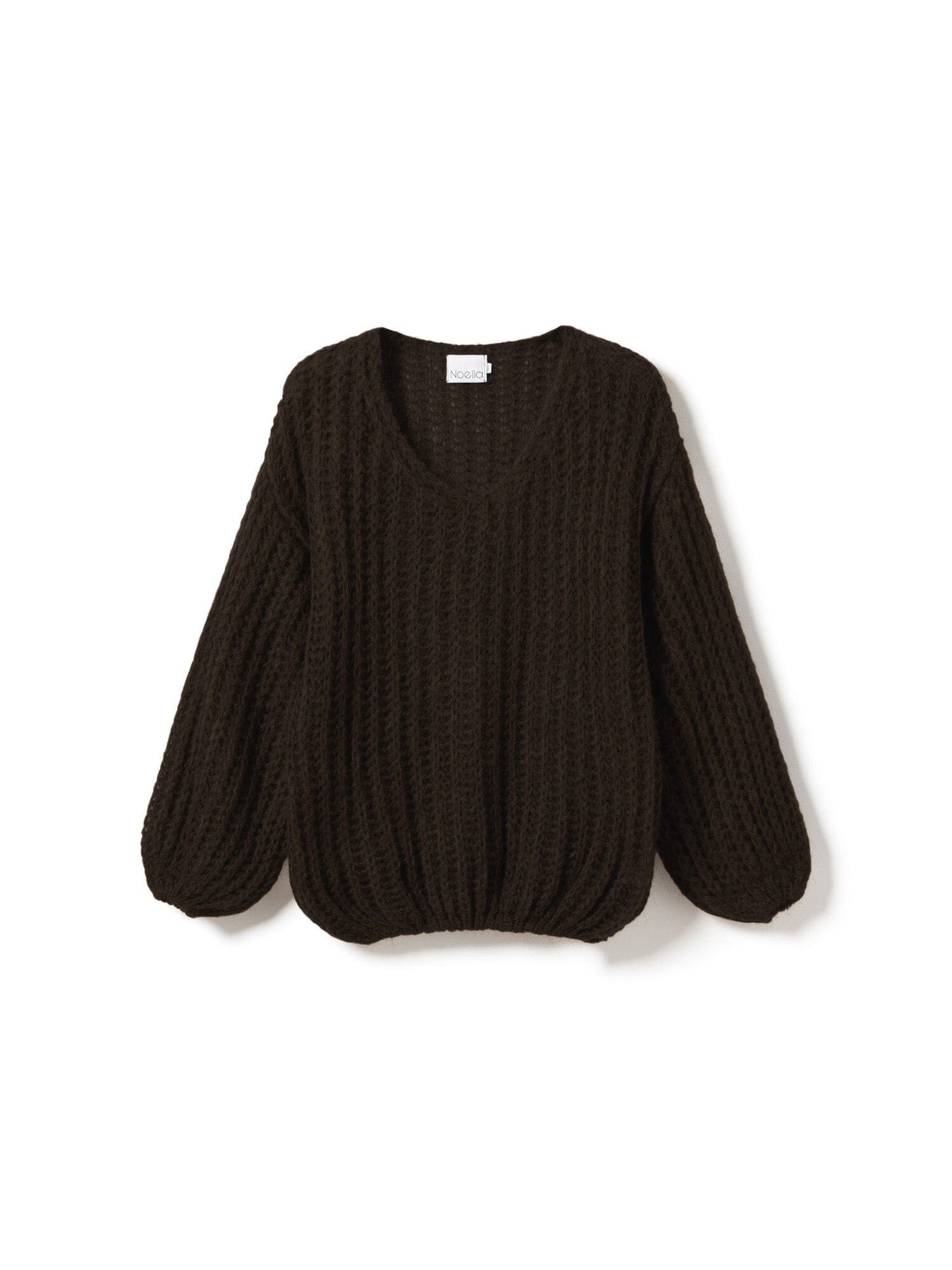 Donkerbruine gebreide trui van Noella met een ribgebreide structuur en volumineuze mouwen. De trui heeft een losse pasvorm en verlaagde schouders.