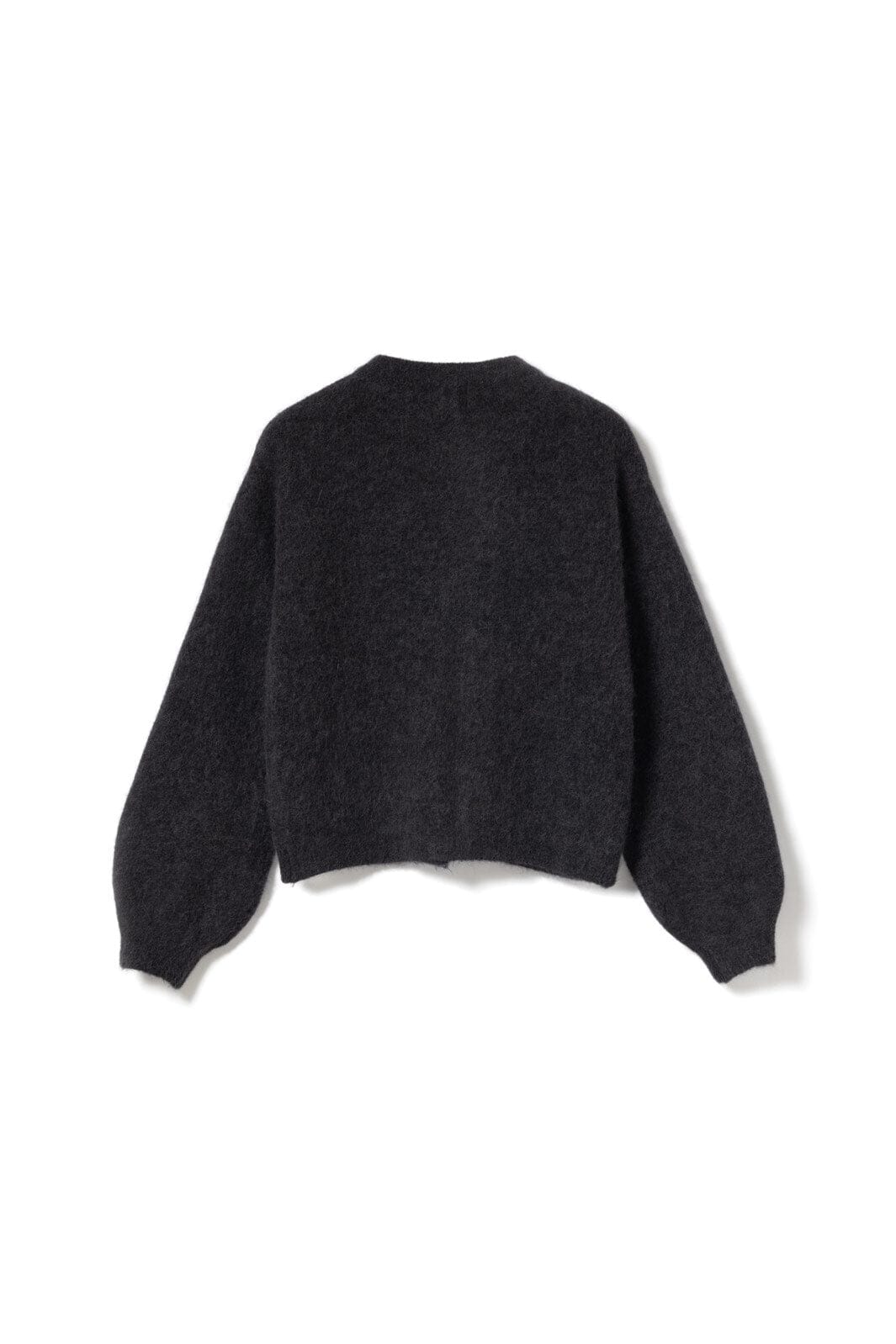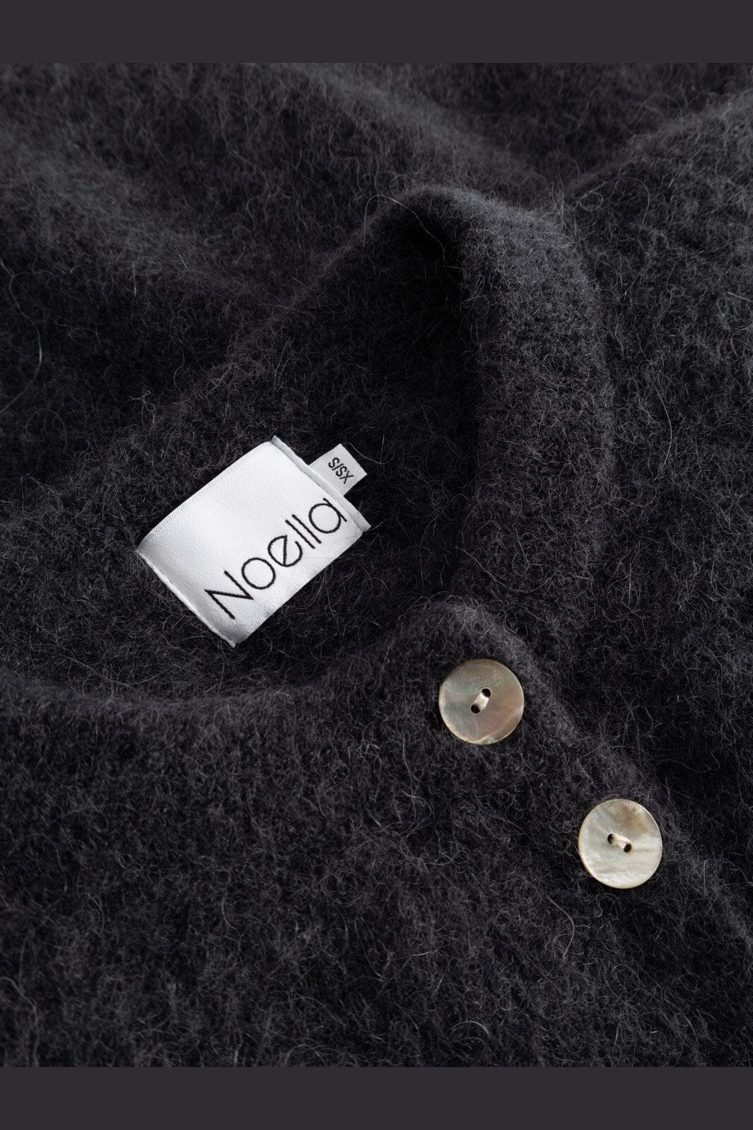 Donkergrijs gebreid vest van Noella met pofmouwen en parelknopen. De losse pasvorm en de zachte materiaalblend zorgen voor een comfortabel vest voor elke dag.