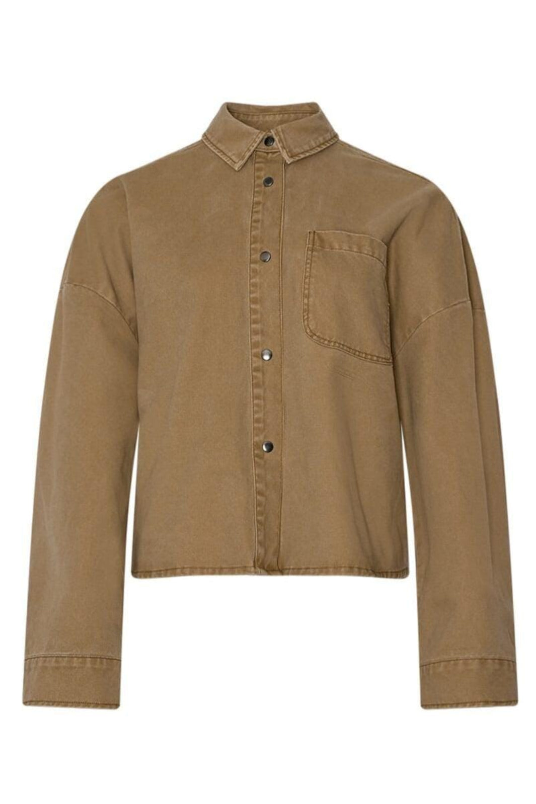 Een shirt van Noella in een olijfgroene kleur. Het shirt is gemaakt van 100 % katoen en heeft decoratieve stiksels en een knoopsluiting met metalen knopen.