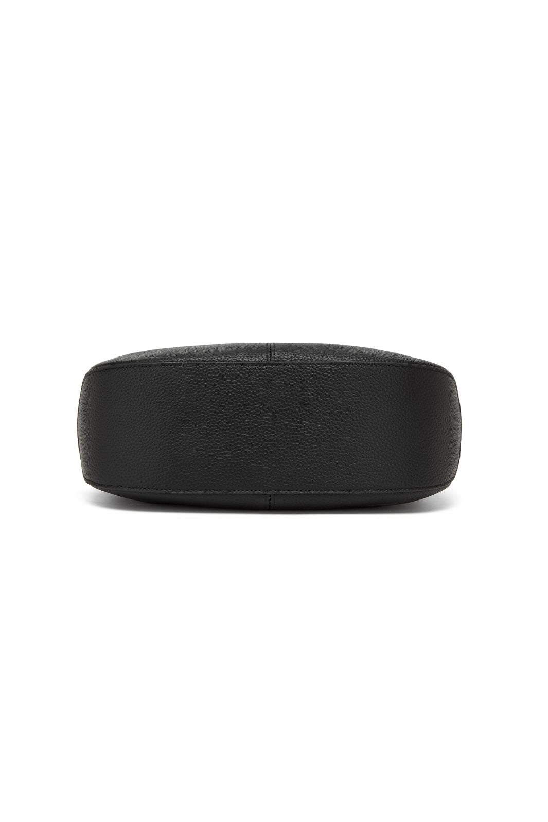 Zwarte schoudertas van Noella, gemaakt van echt leer met een licht fijnkorrelige structuur. De tas heeft één hengsel en een afgeronde onderkant.