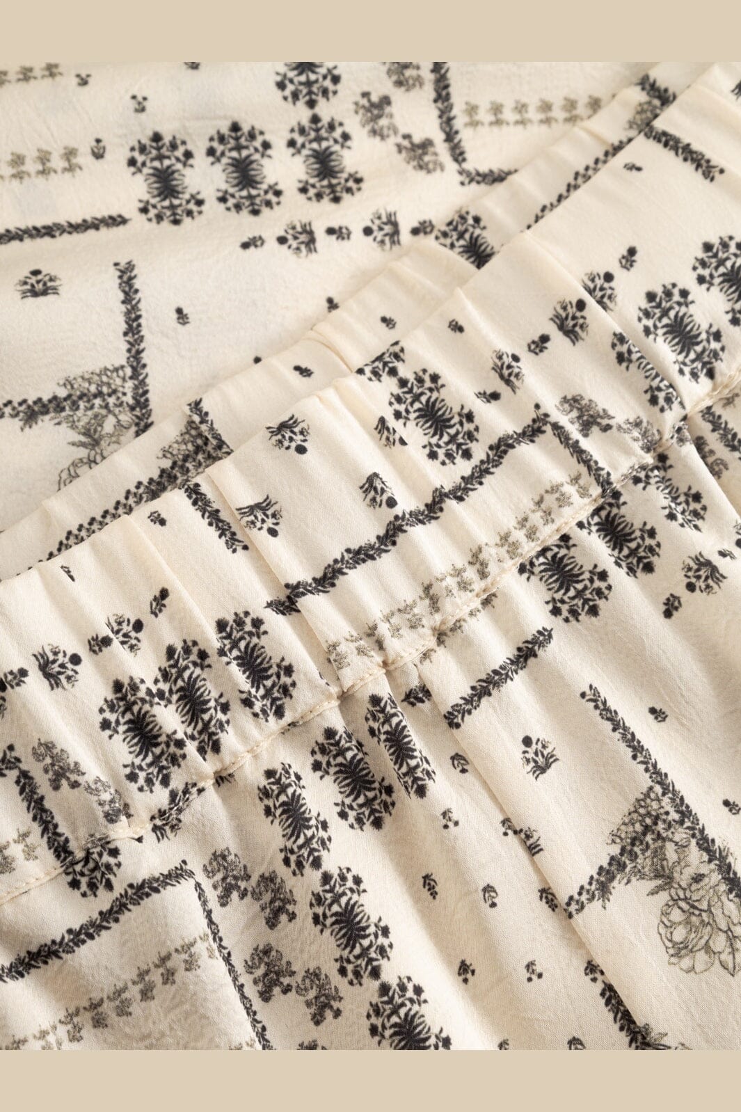 Broek van Noella in een ivoorkleurige tint met geometrische en bloemrijke print. De broek heeft wijde pijpen en een hoge taille.