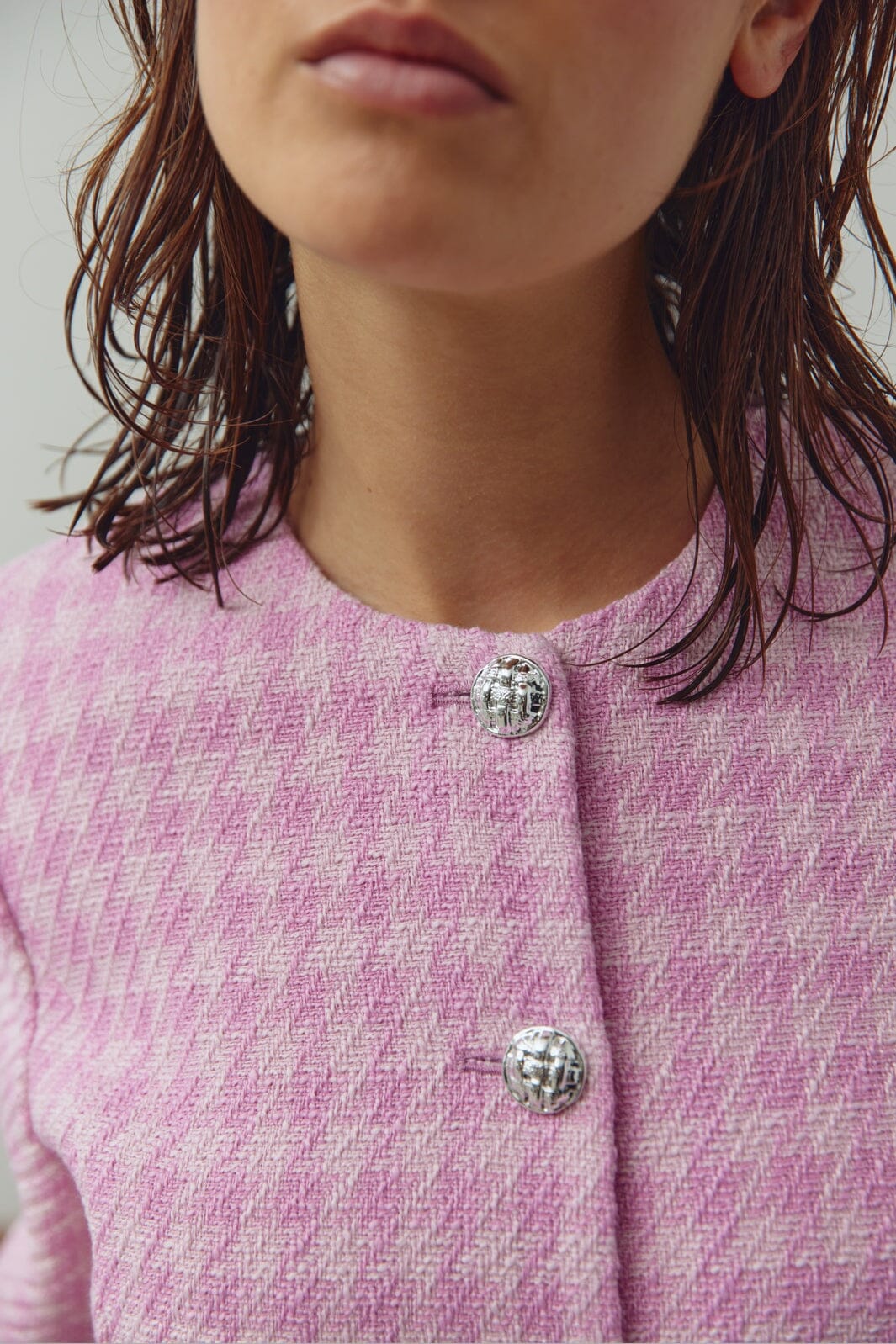 Roze geruite blazer van Noella, gemaakt van geweven polyester. De blazer heeft een getailleerde pasvorm en korte mouwen met een ronde halslijn.