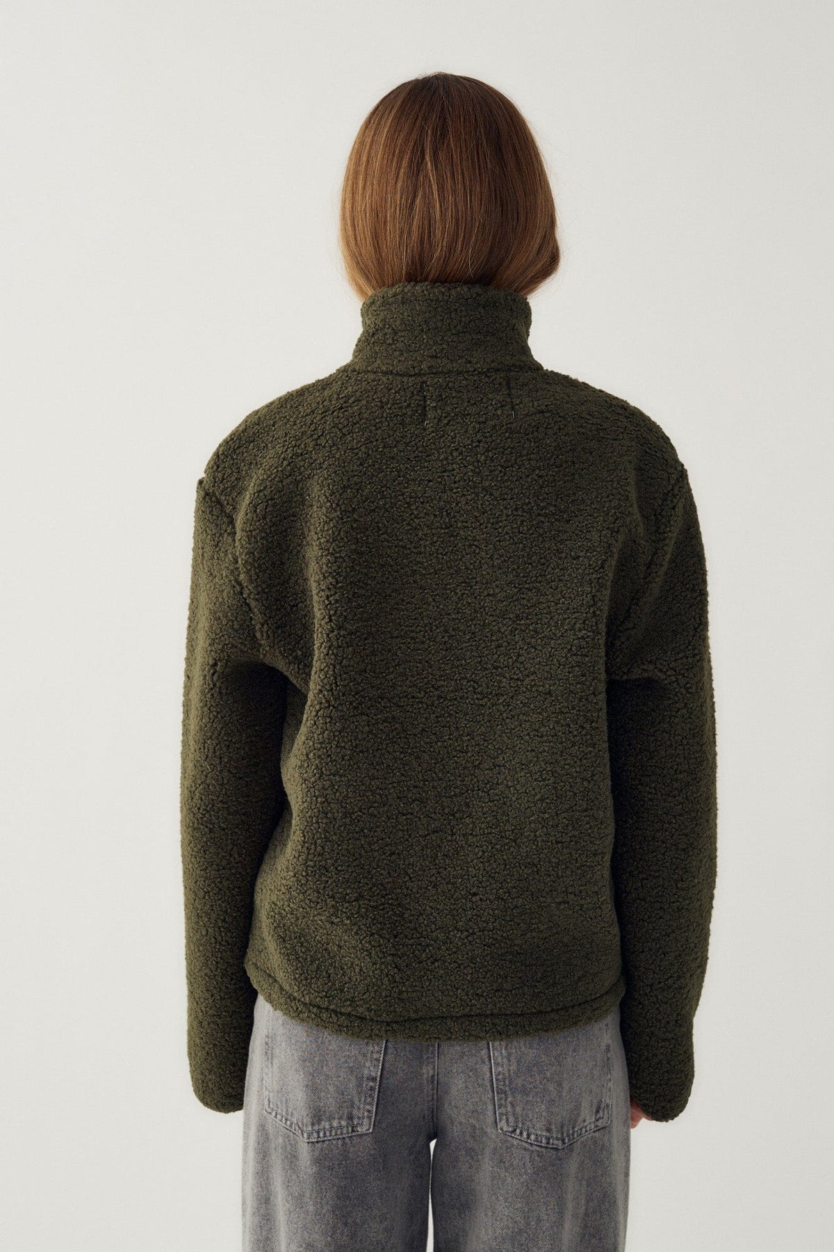 Militairgroene jas van Noella, gemaakt van polyester met een zachte en gestructureerde oppervlakte. De jas heeft een eenvoudig ontwerp met een ritssluiting aan de voorkant.