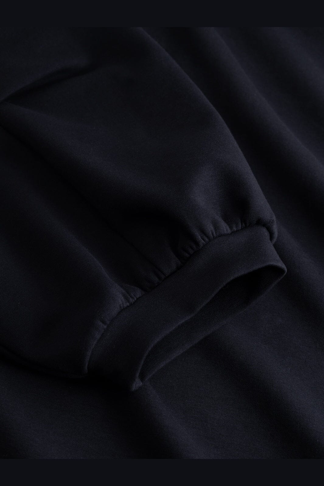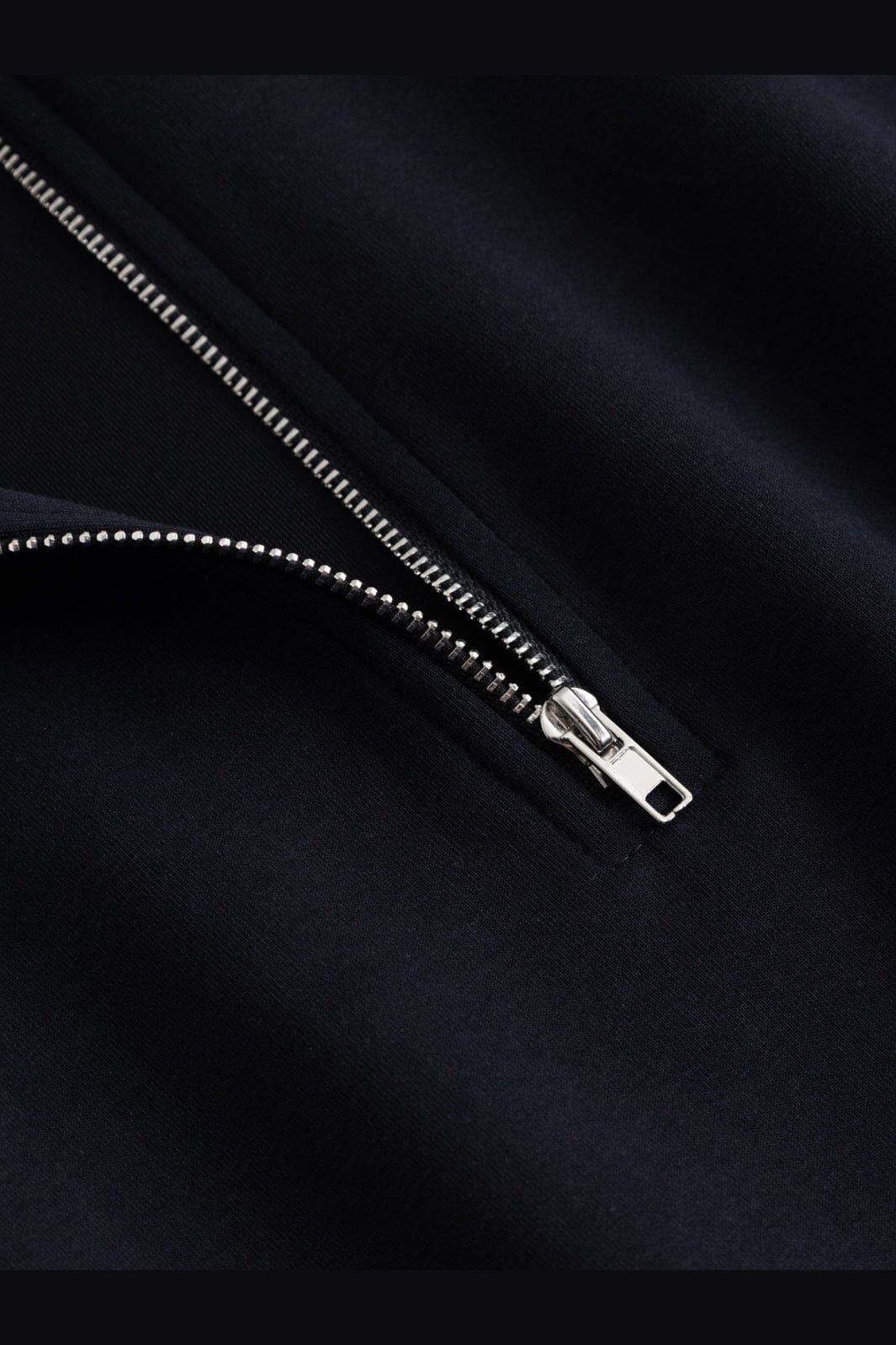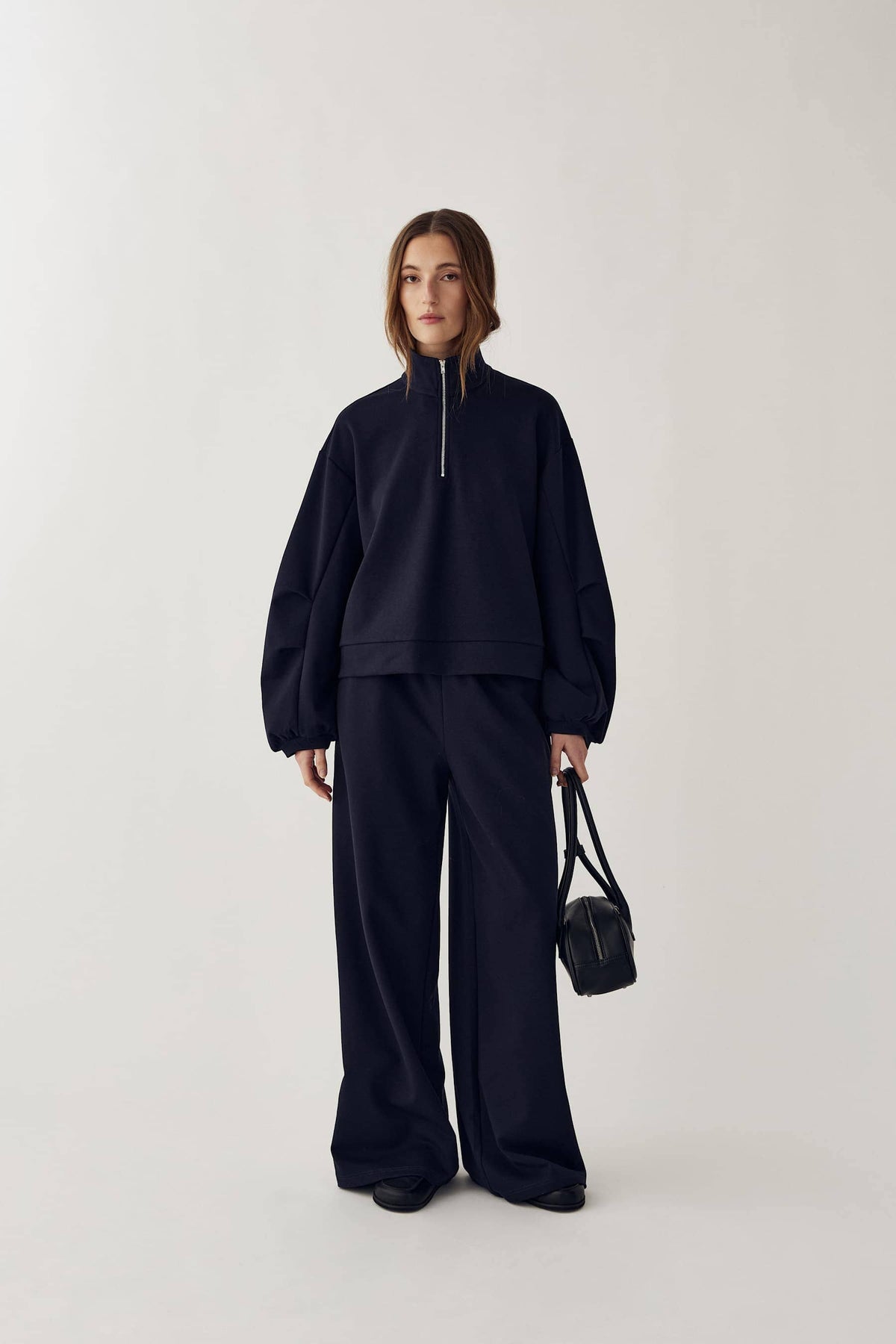Donkerblauwe top van Noella, gemaakt van 100% polyester. De top heeft een hoge kraag met een halve ritssluiting en lange mouwen met elastische boorden.