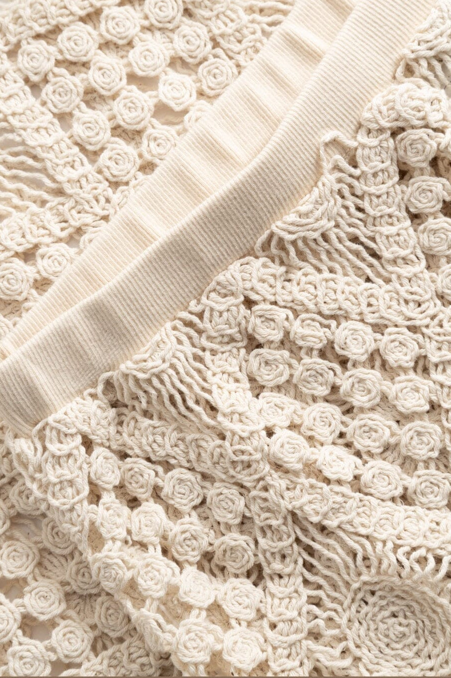 Gehaakte rok van Noella in een offwhite kleur. De rok is gemaakt van 98% katoen en 2% nylon en heeft een gehaakt design met lange macramé franjes.
