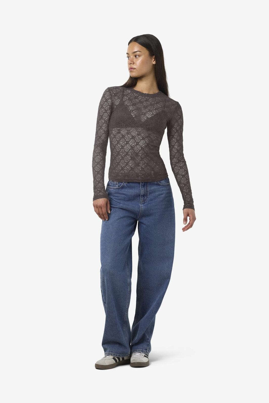 Noisy May Nmjudith L/S Lace Top Kleur: 4793425 Charcoal Gray