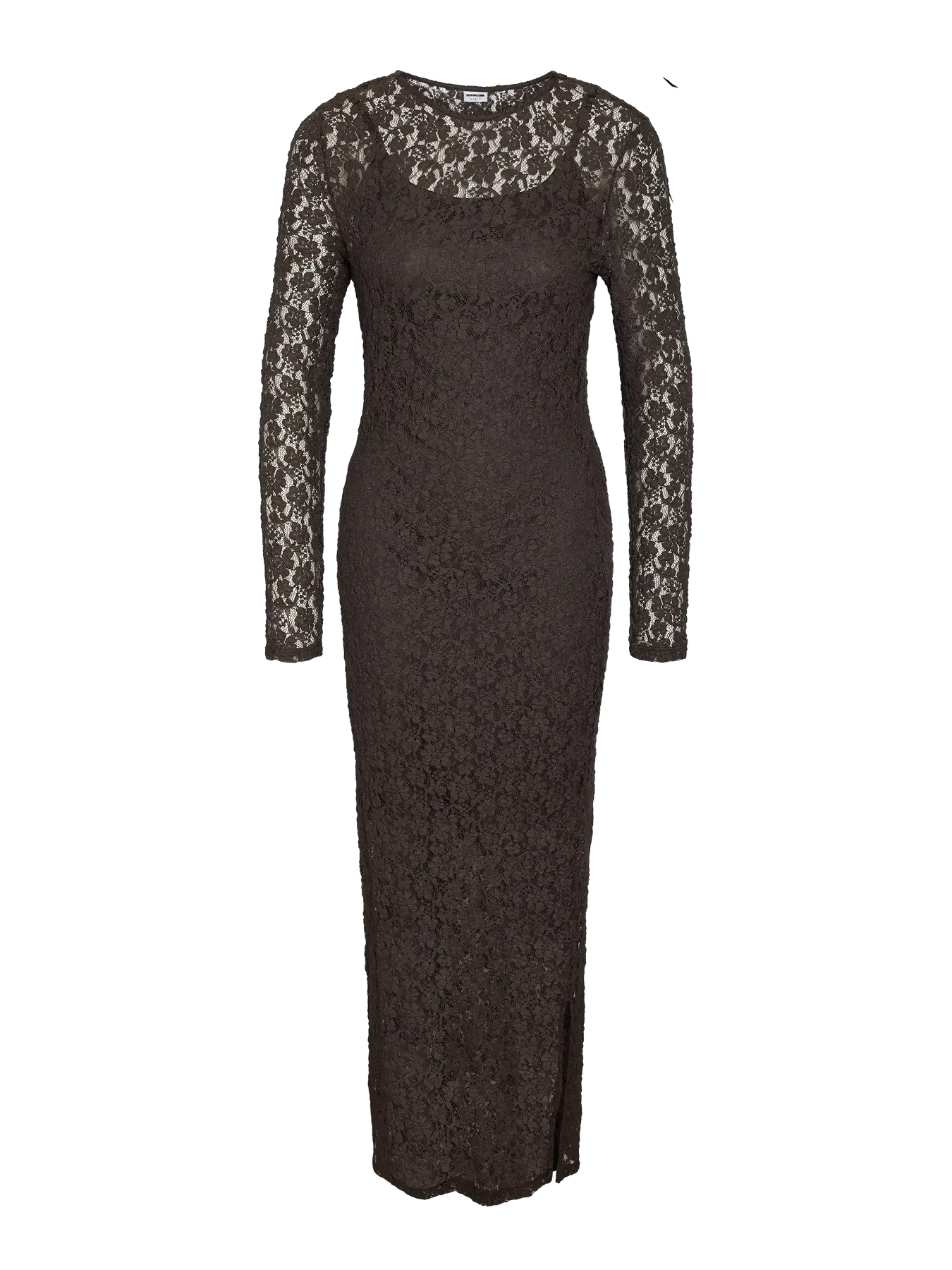 Noisy May Nmmiriam L/S Maxi Lace Dress Kleur: 5064757 Chocolate Brown