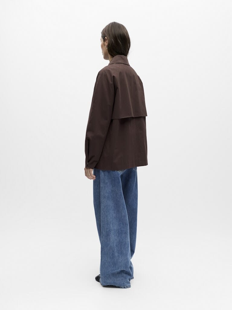 Trenchcoat van Object in een bruine tint. De jas heeft een openstaande kraag, lange mouwen met knoopmanchetten en handige zijzakken. Hij sluit met knopen aan de voorkant.