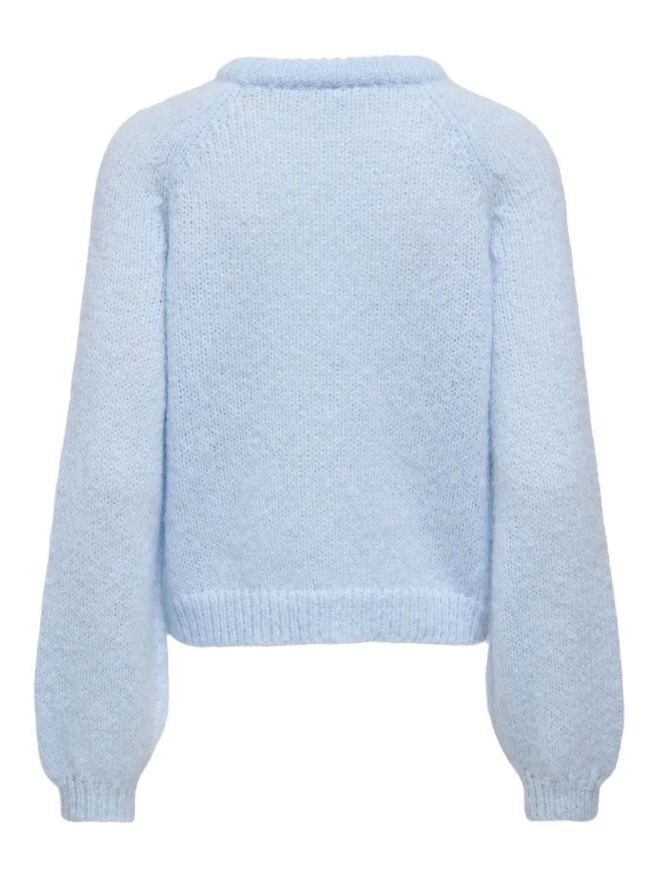 Lichtblauw vest van Only met knoopsluiting aan de voorkant. Het vest heeft raglanmouwen en een ronde halslijn met geribde details.