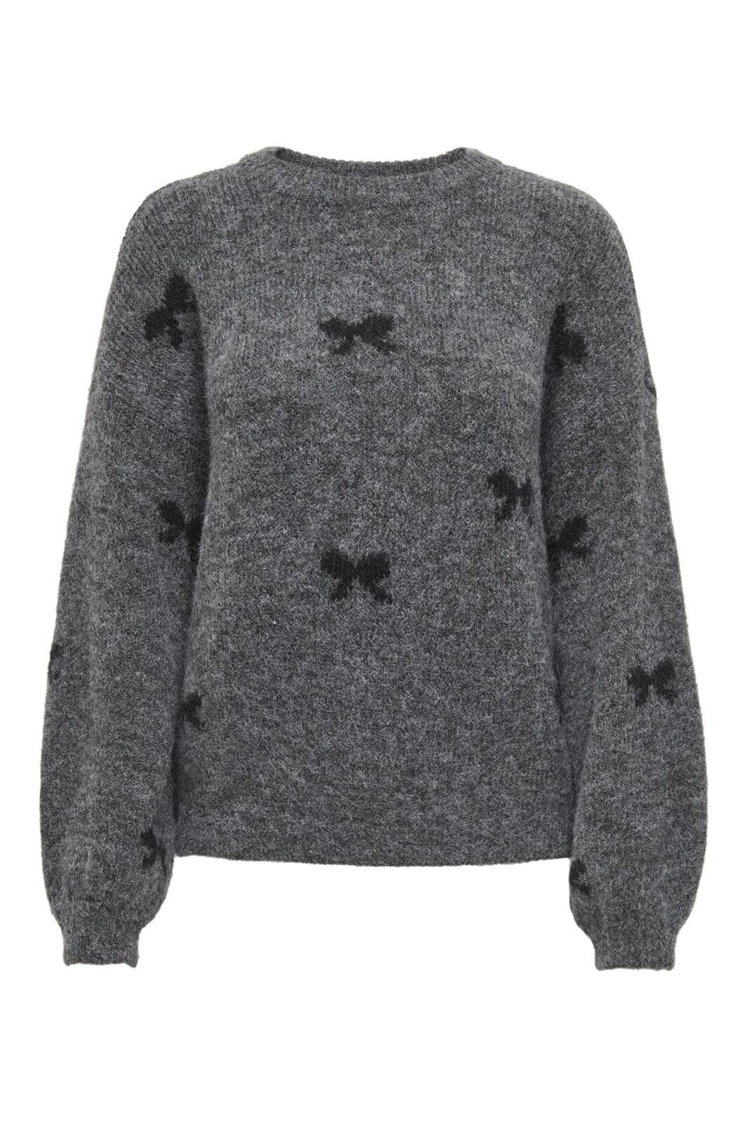 Only Onlbrunhilda Life Ls Bow O-Neck Knt Kleur: 4947221 Medium Grey Melange Black/Mini Bow