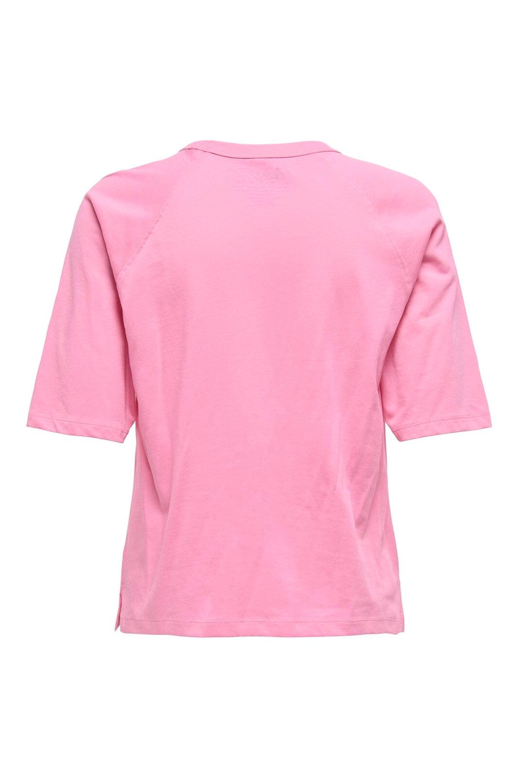 Roze t-shirt van Only met een Coca-Cola kerstmotief. De t-shirt heeft een klassiek print met de kerstman en een rendier op de voorkant en het bekende Coca-Cola-logo in het rood.