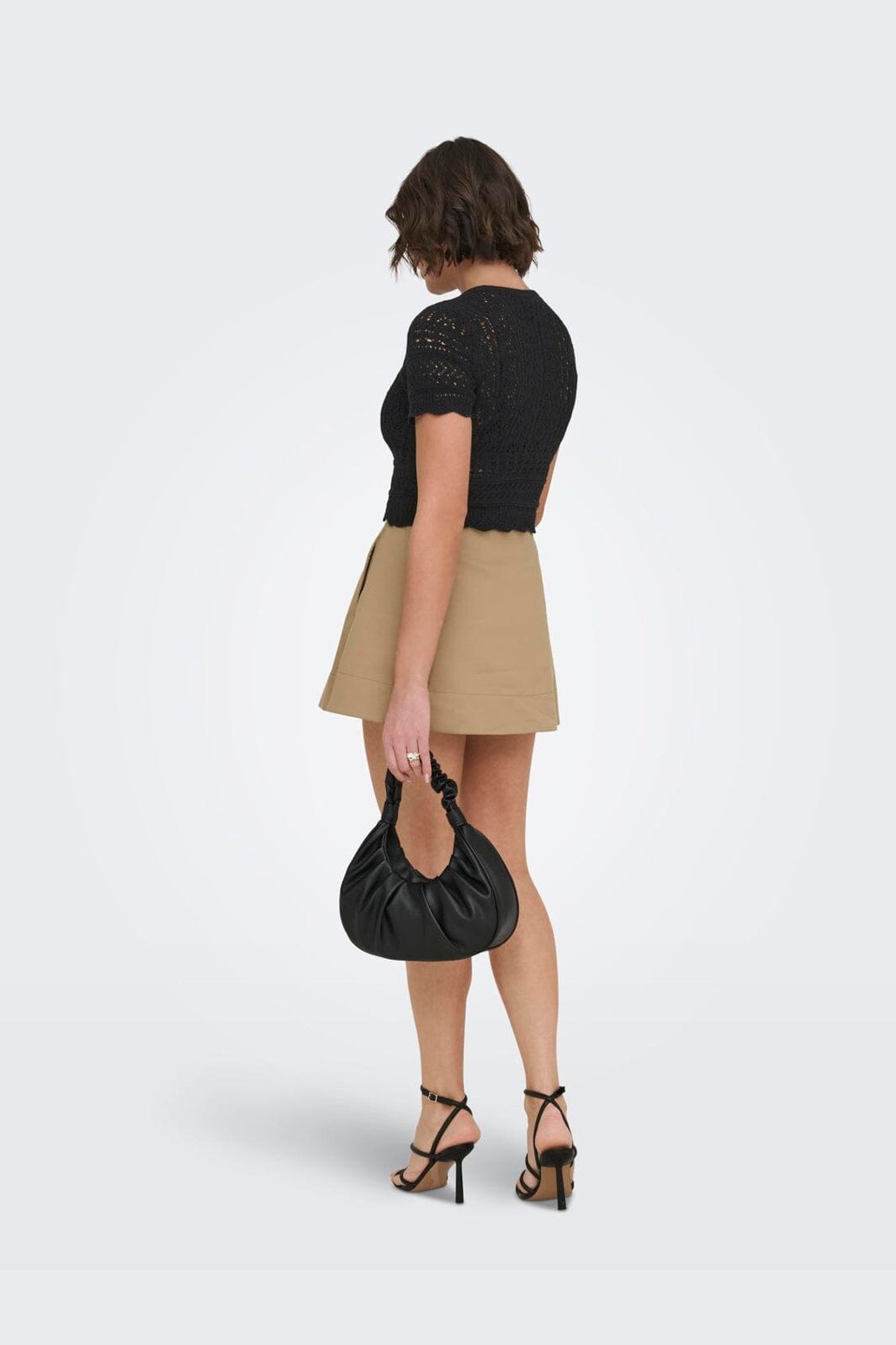 Zwart vest van Only met parelknopen en schelpdetails. Het vest is gemaakt van gerecyclede materialen en heeft een kort, cropped model met korte mouwen.