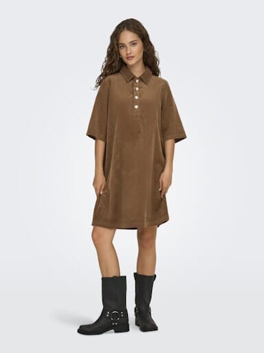 Only Onlgry-Nessa S/S Cord Dress Kleur: 4854608 Toasted Coconut