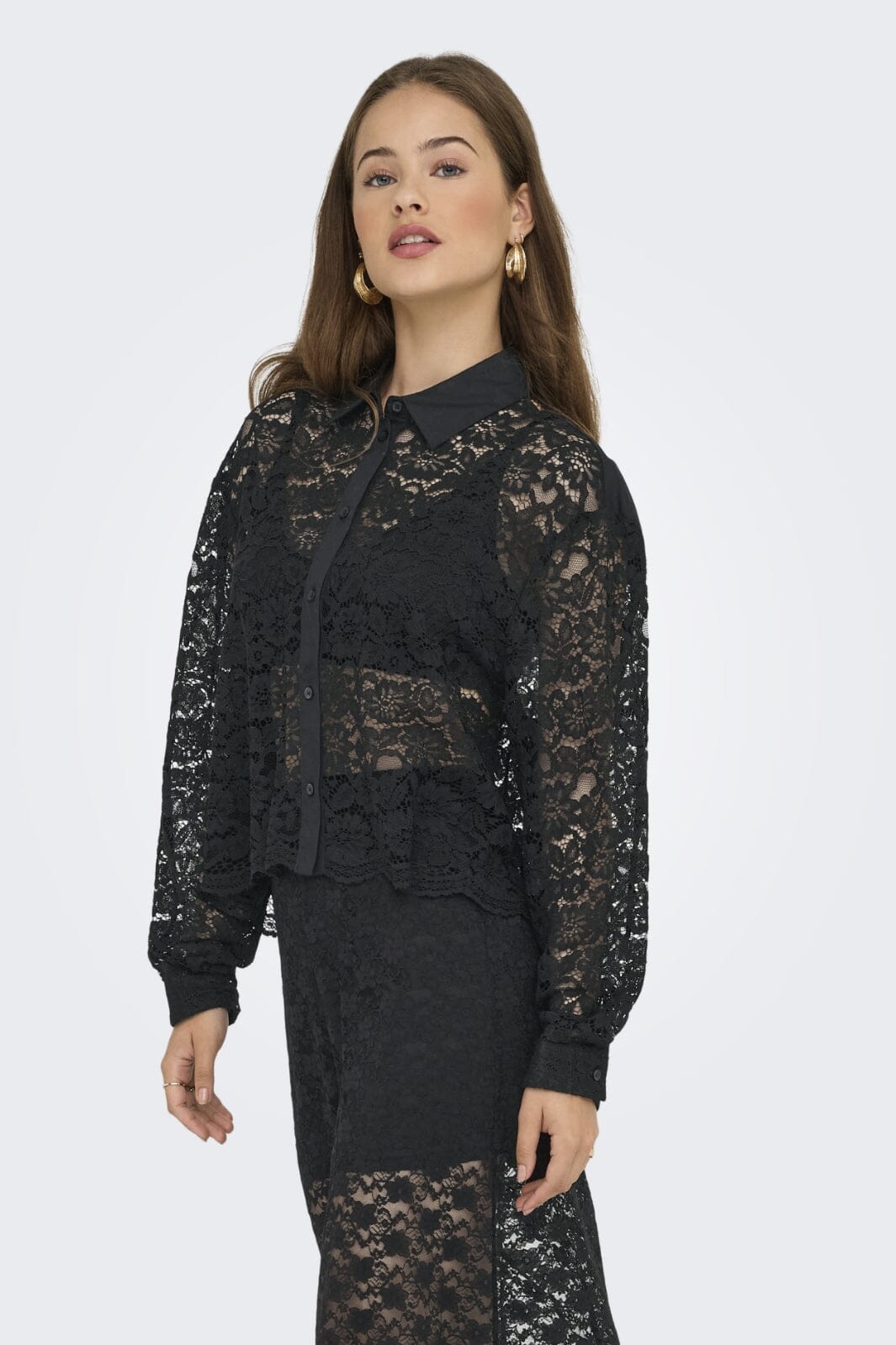 Only Onljilli Lace Mix Shirt Kleur: 4847004 Black