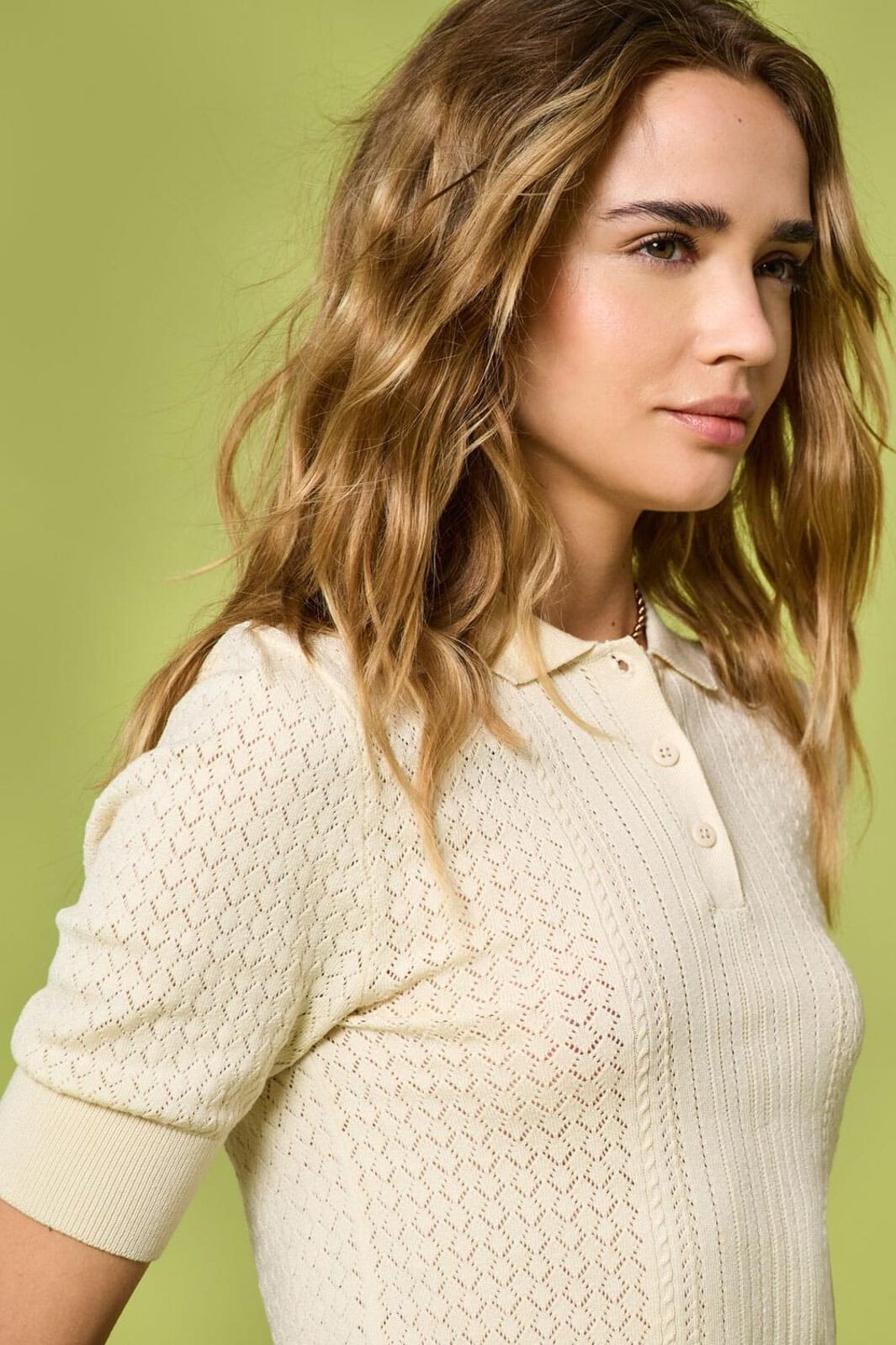 Kort mouw poloshirt van Only in licht beige met een gestructureerd breipatroon. Het shirt heeft een slim fit pasvorm en een klassieke polokraag met knoopsluiting.