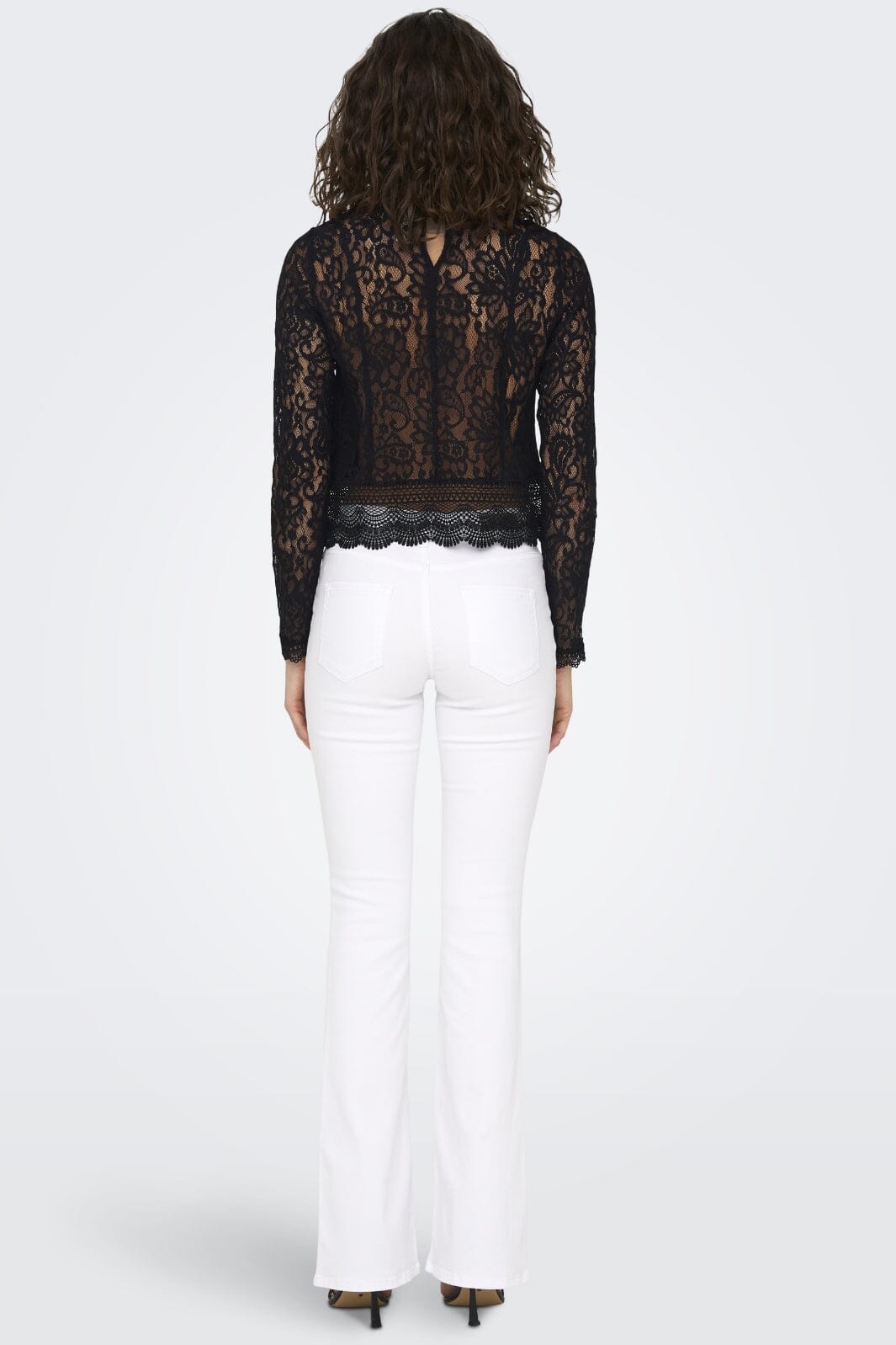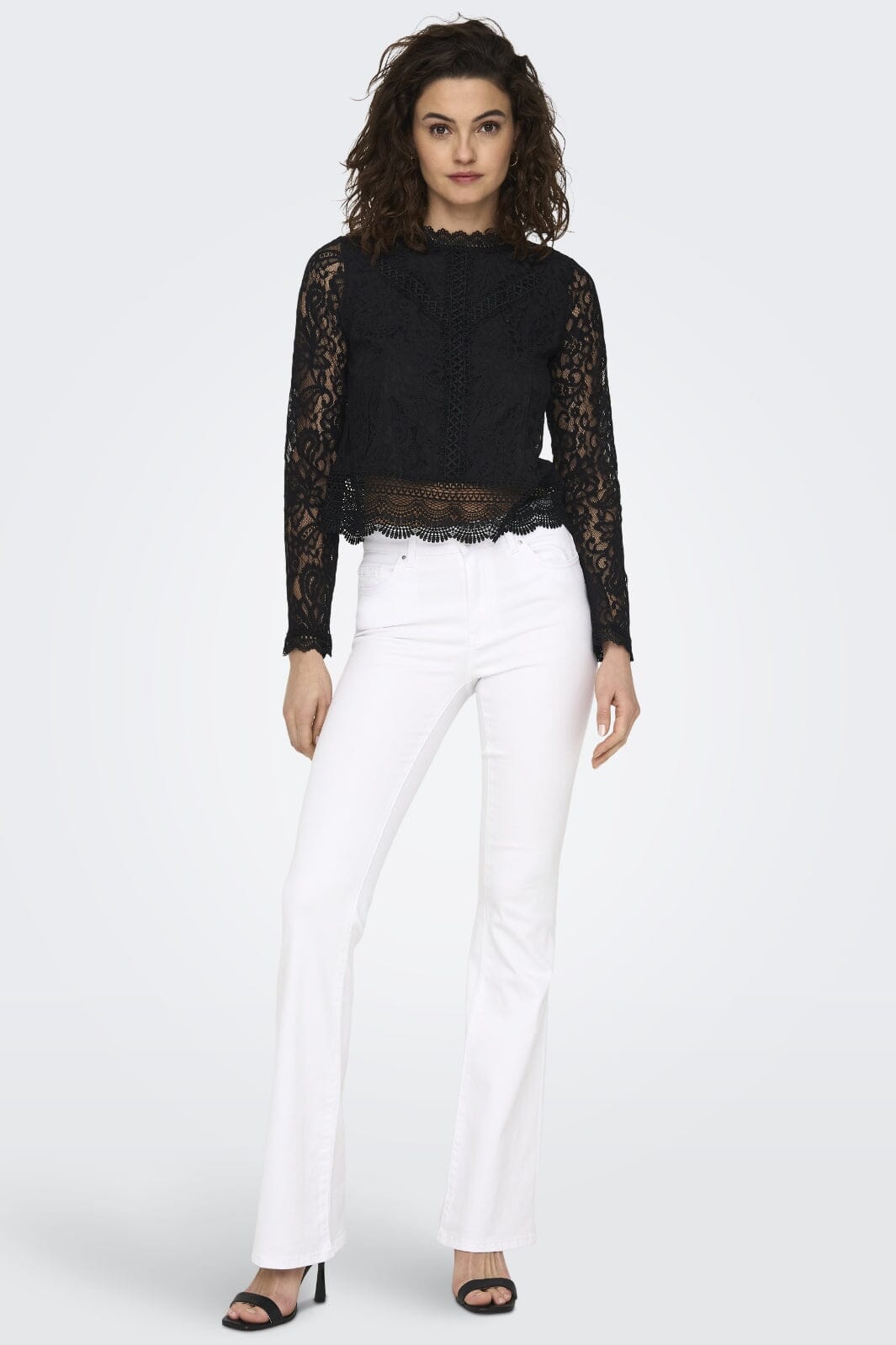 Only Onlnew Karo Ls Lace Top Kleur: 4142378 Black