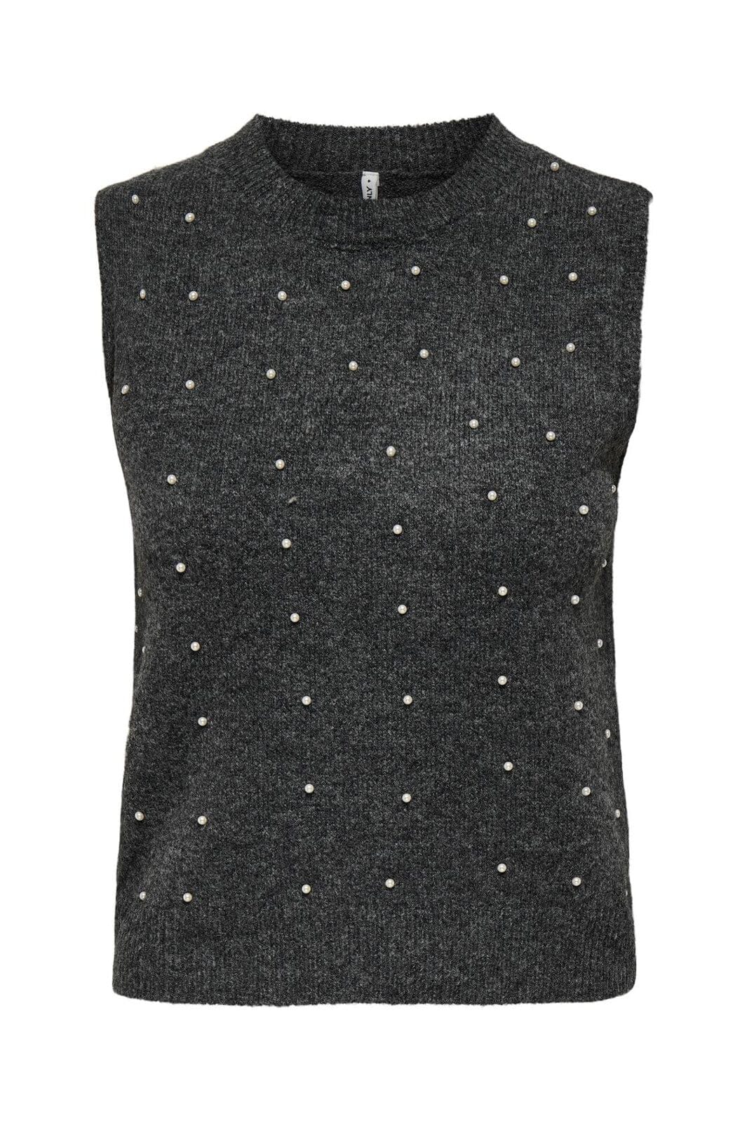Only Onlrenata Sl O-Neck Pearl Vest Knt Kleur: 4805610 Dark Grey Melange White Pearls