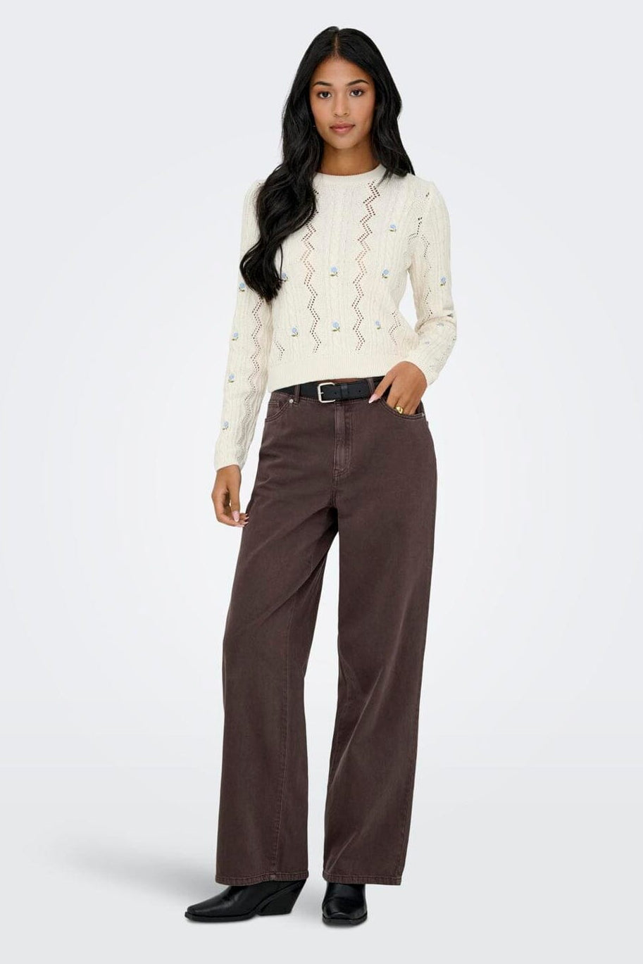 Only Onlrita Life Ls Embr Cable Knt Kleur: 4862606 Ecru Cashmere Blue Flower