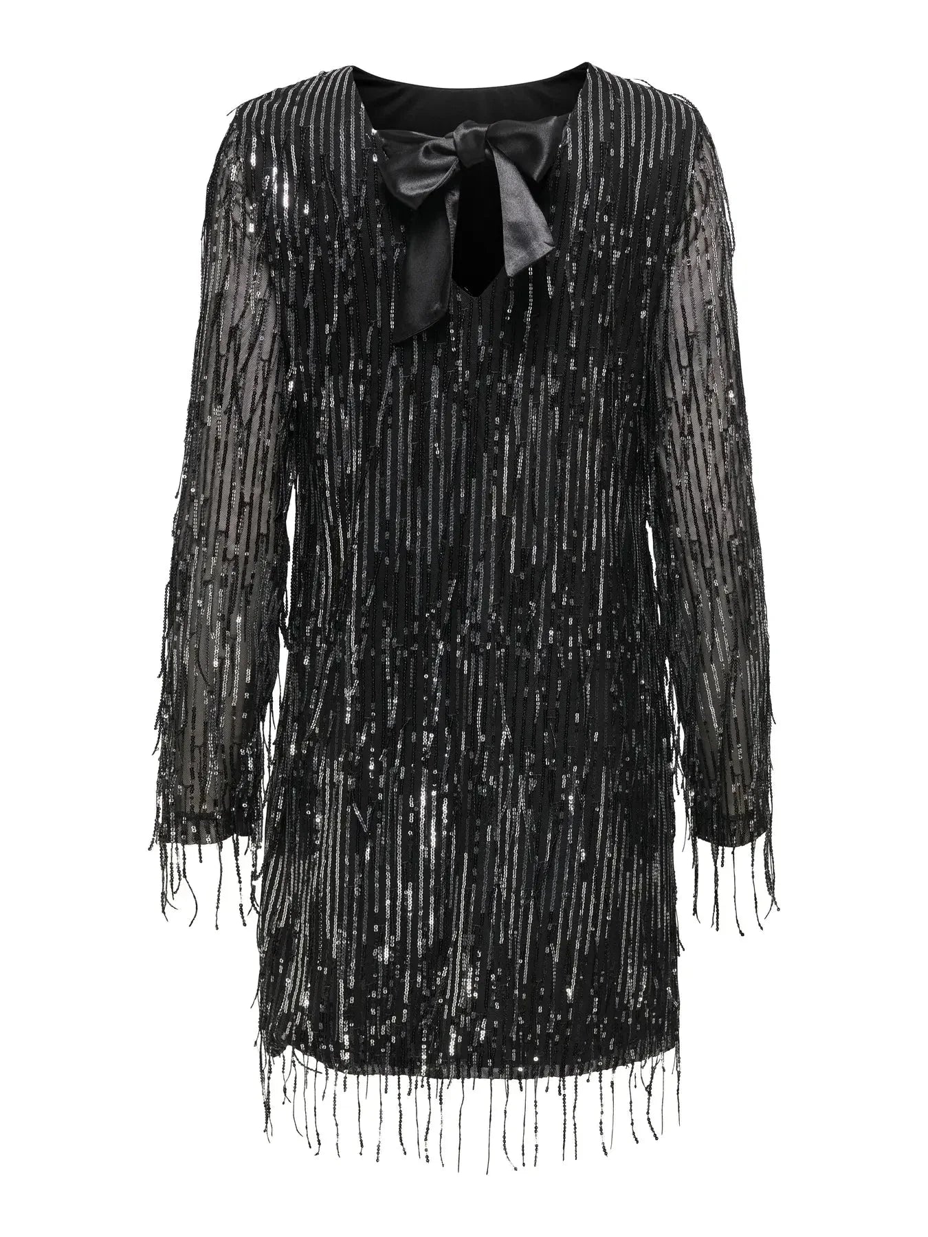 Only Onlspacy Ls Sequins Bow Dress Kleur: 4877201 Black W. Silver Sequins