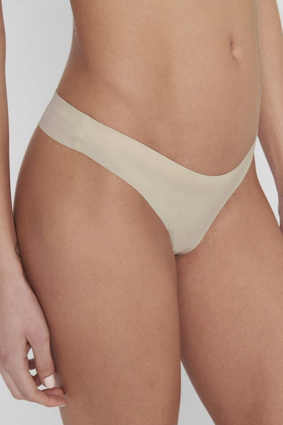 Naadloze string van Only in de beige tint Peach Taffy. Hij heeft een glad oppervlak en een elastische tailleband met het merklogo.