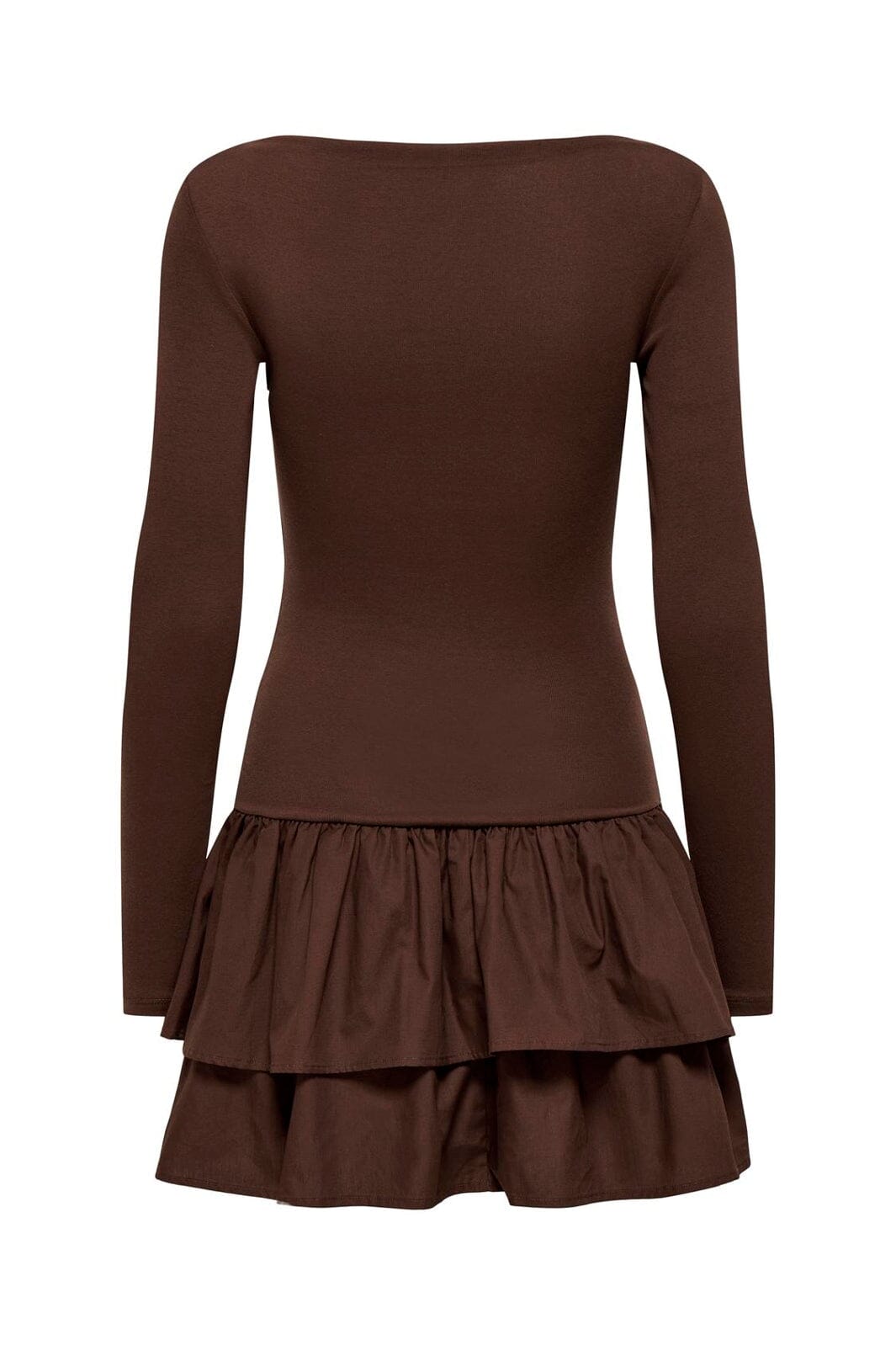 Only Onlvega L/S Boatneck Mix Dress Box Kleur: 4978822 Chicory Coffee Chicory Coffee Woven Bottom