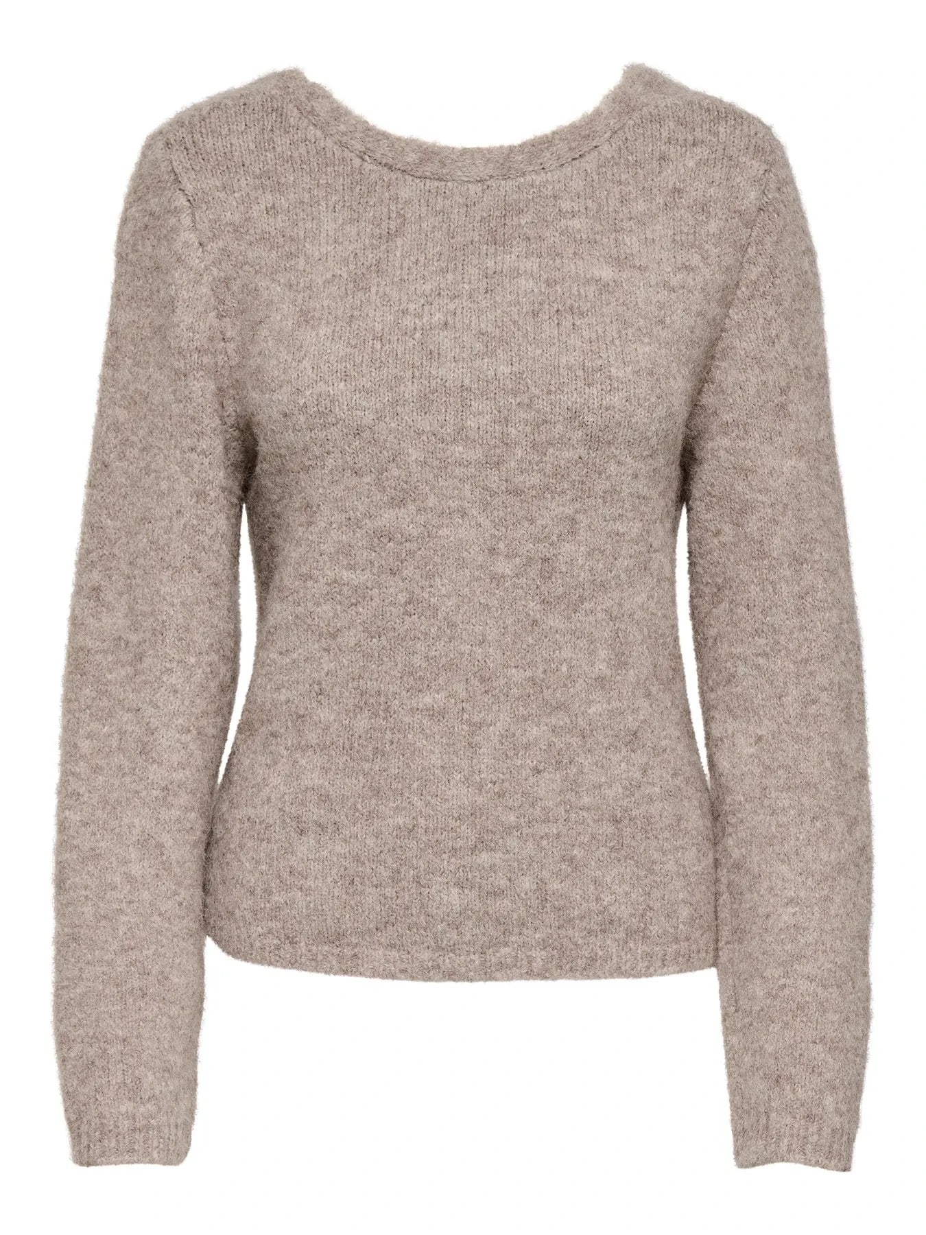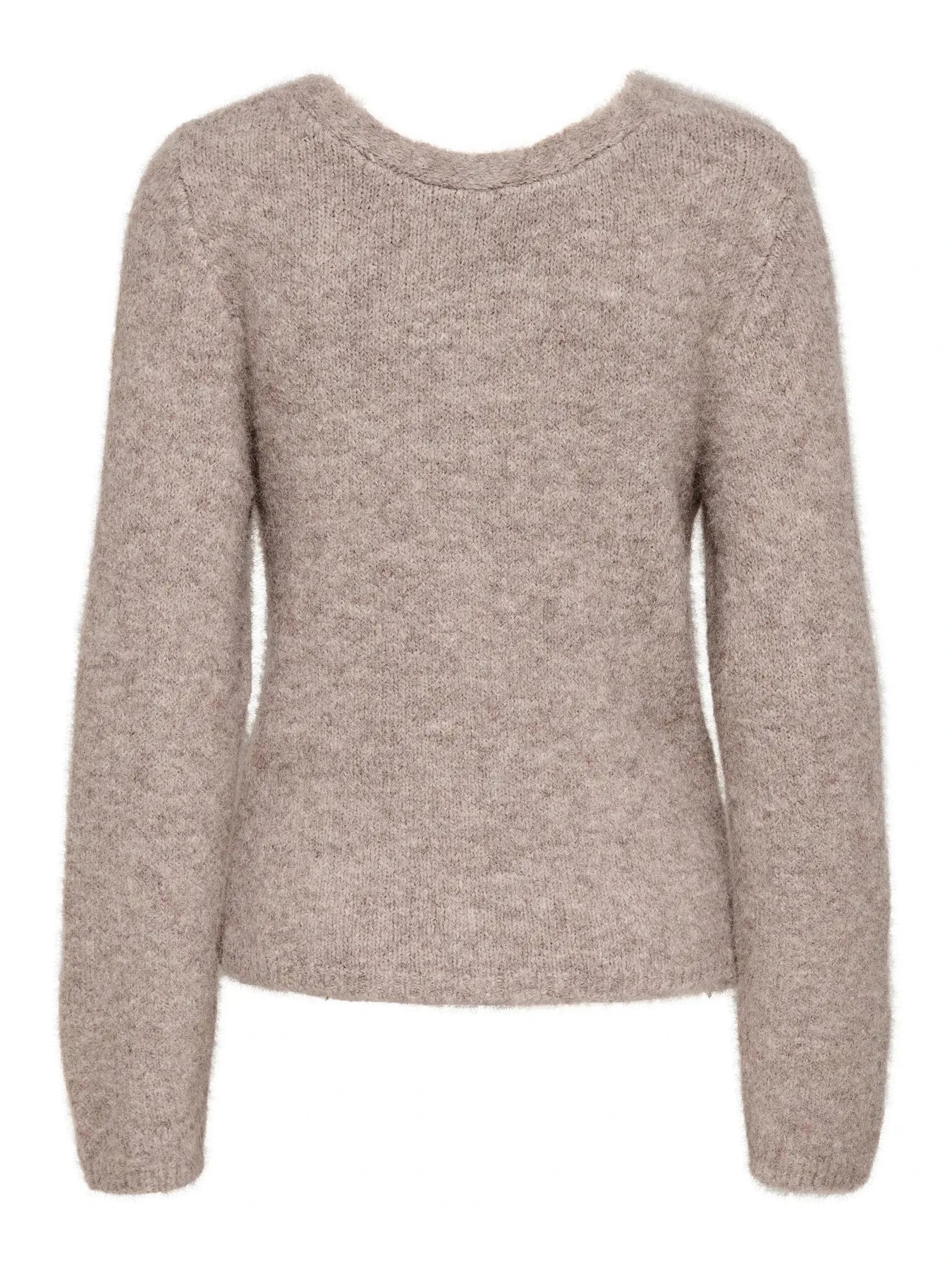 Beige gebreide trui van Only met een gemêleerd oppervlak. De trui is omkeerbaar met zowel een V-hals als een ronde hals.